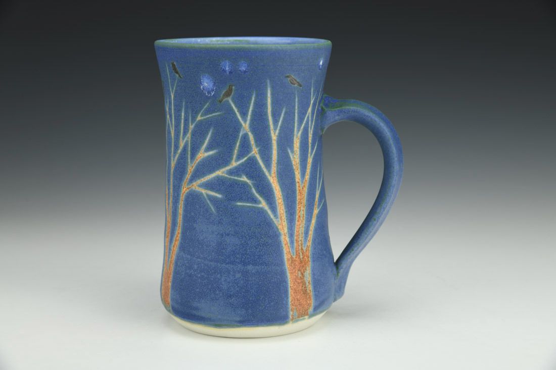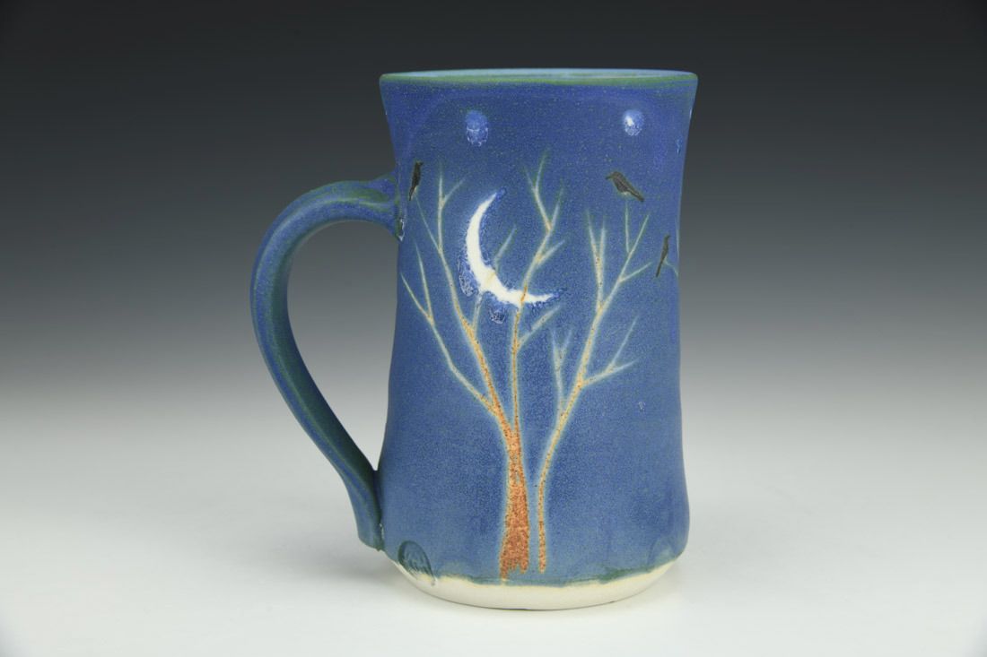 Cup - Night Sky Moon, Stars, and Birds in Treetops