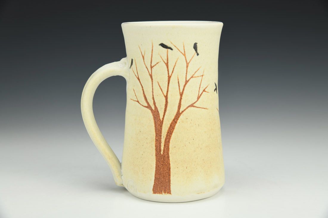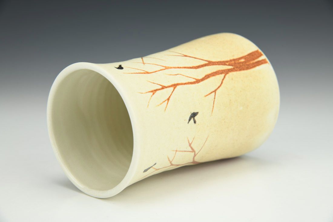 Cup - White with a Moon and Birds in Treetops