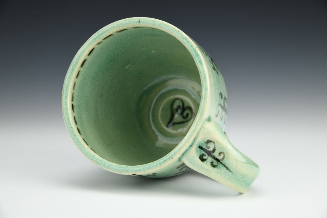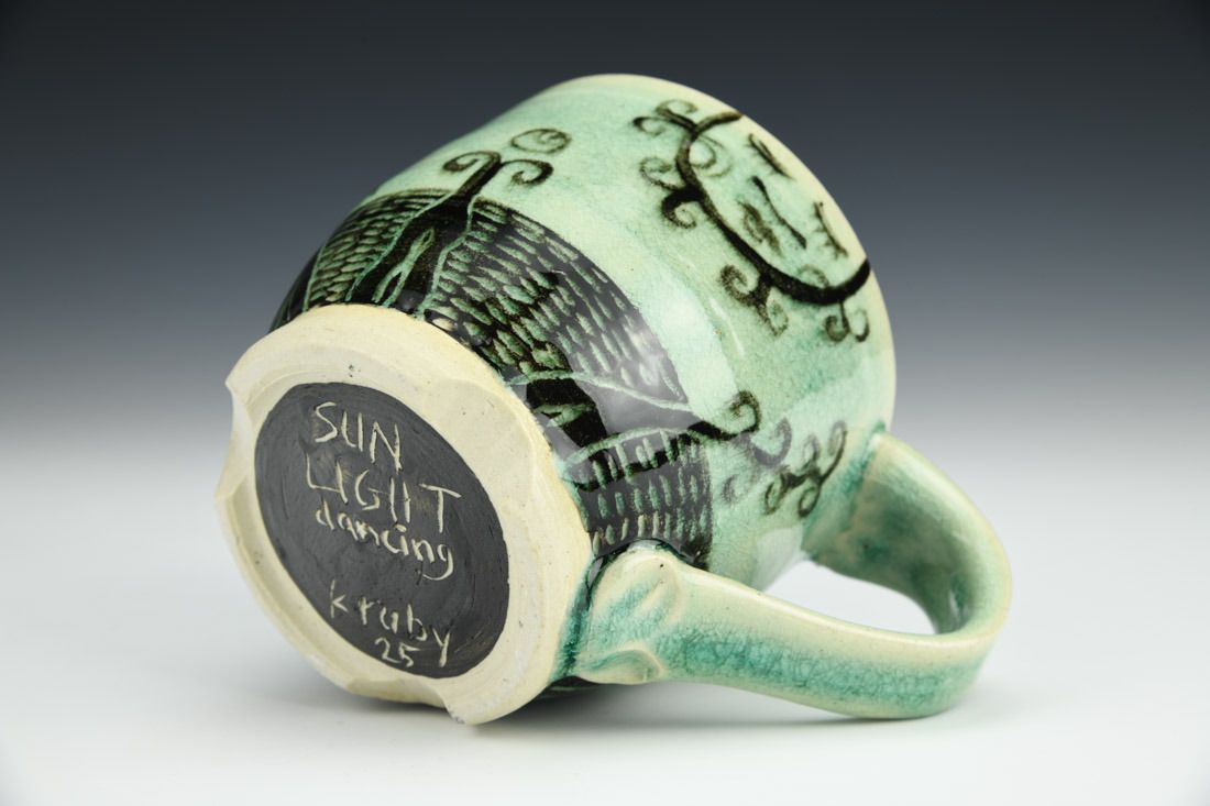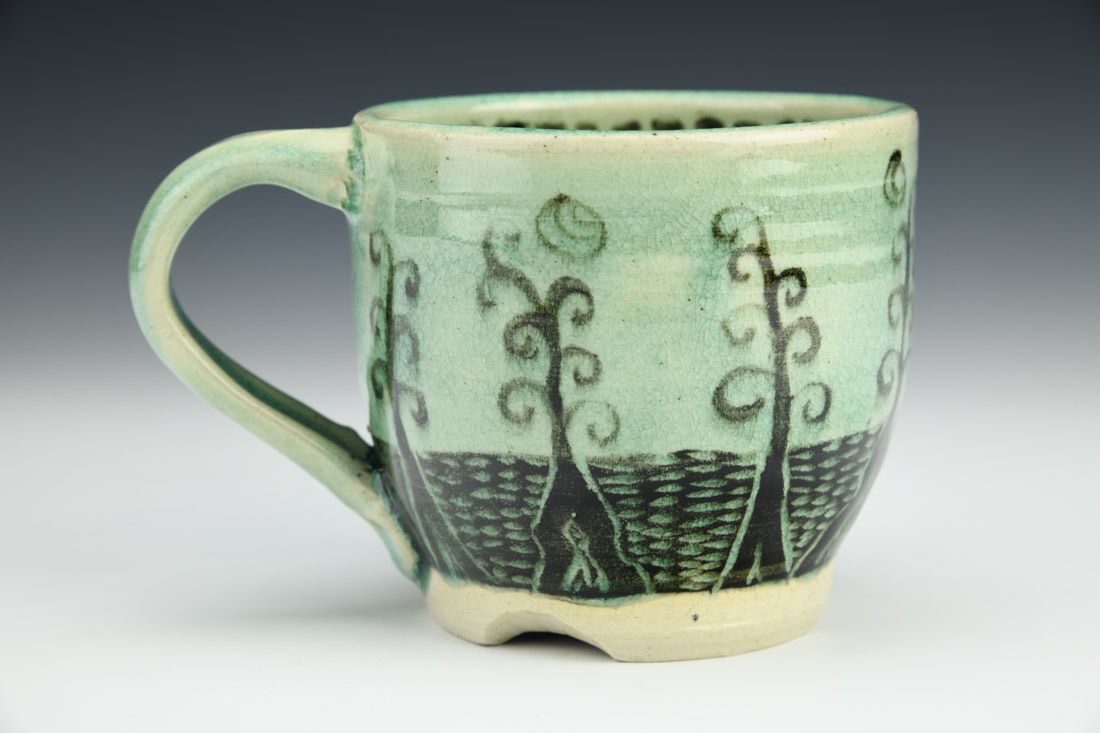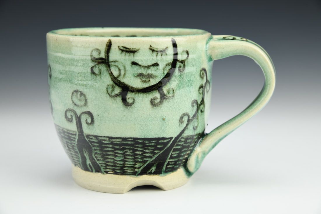B-Mix 5, wheel thrown, freehand painting, sgrafitto, cone 6 fired, 3.75 x 5.5 x 3.75 inches.