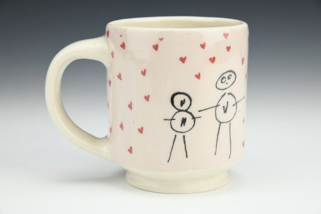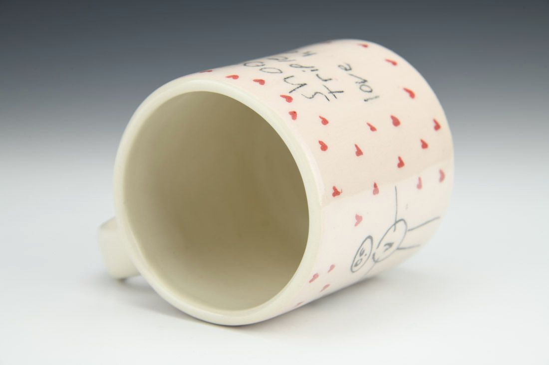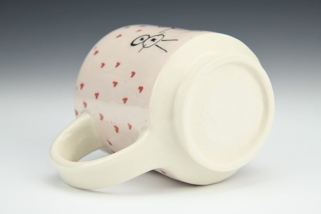 Porcelain, wheel thrown and hand built, pink slip, underglaze, cone 6 fired, 3.75 x 4.75 x 3 inches.