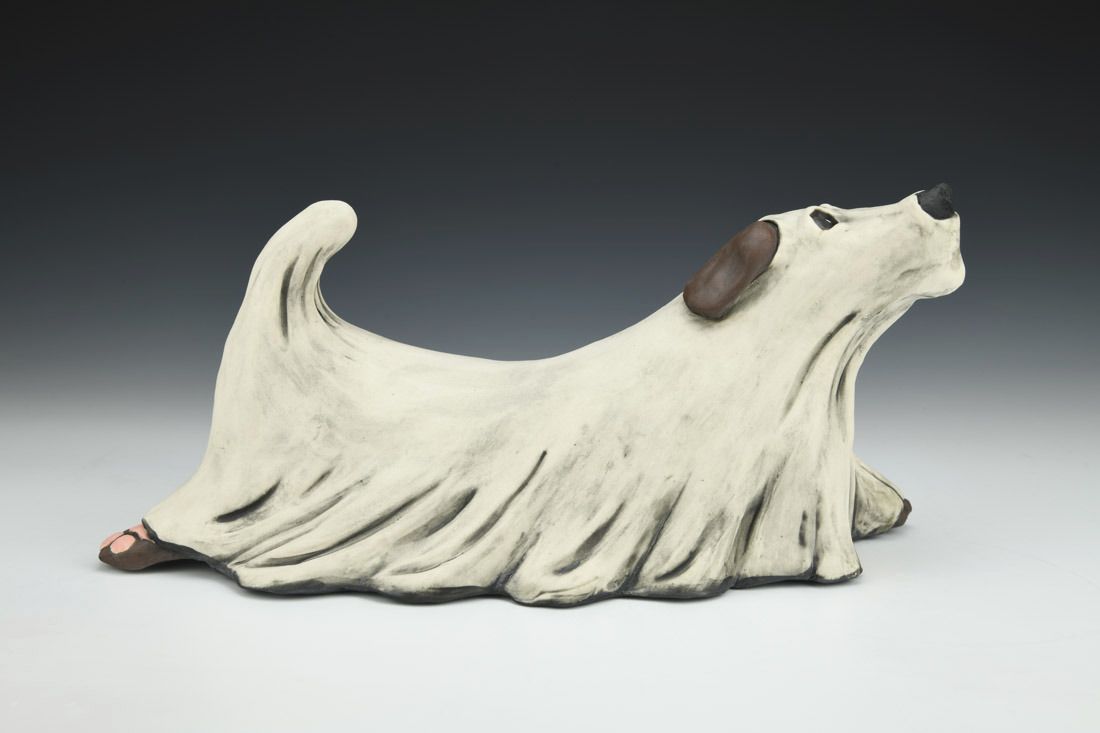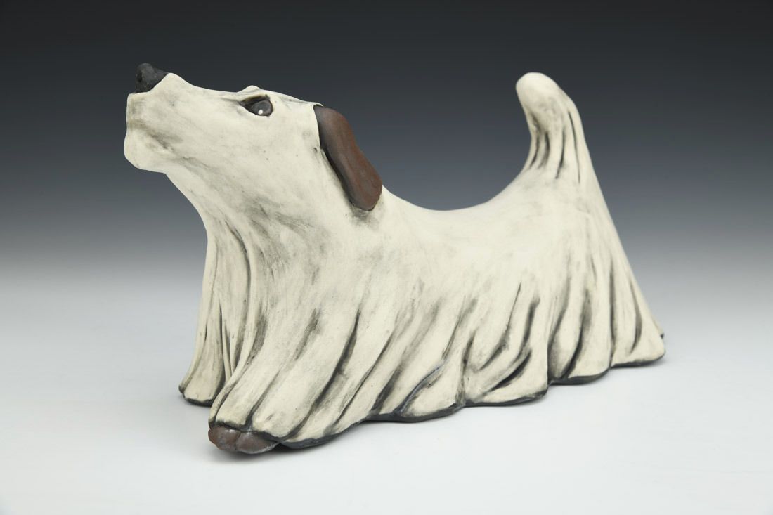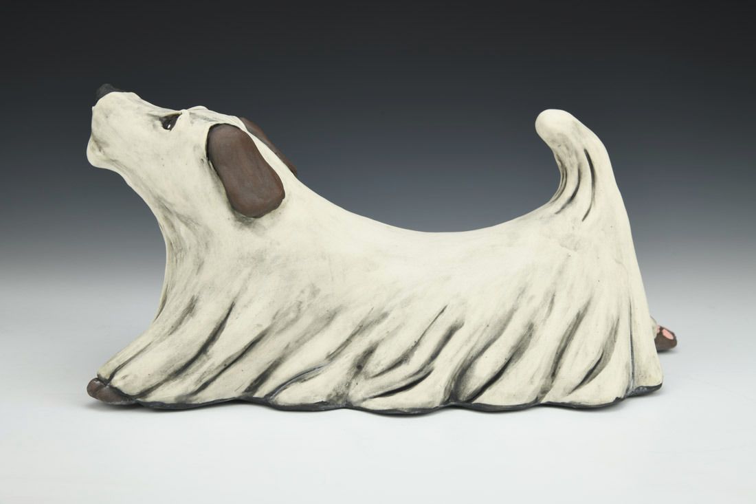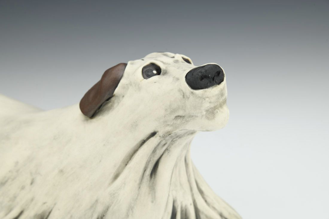 Porcelain, hand built with slabs and coils, underglaze, oxidation fired, 7.5 x 12.5 x 6 inches.