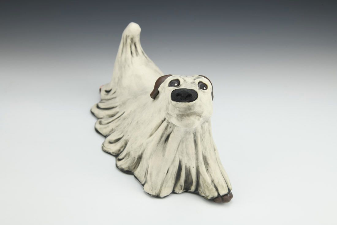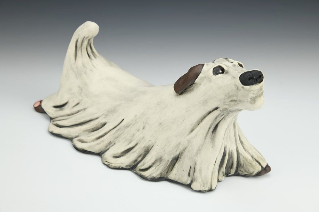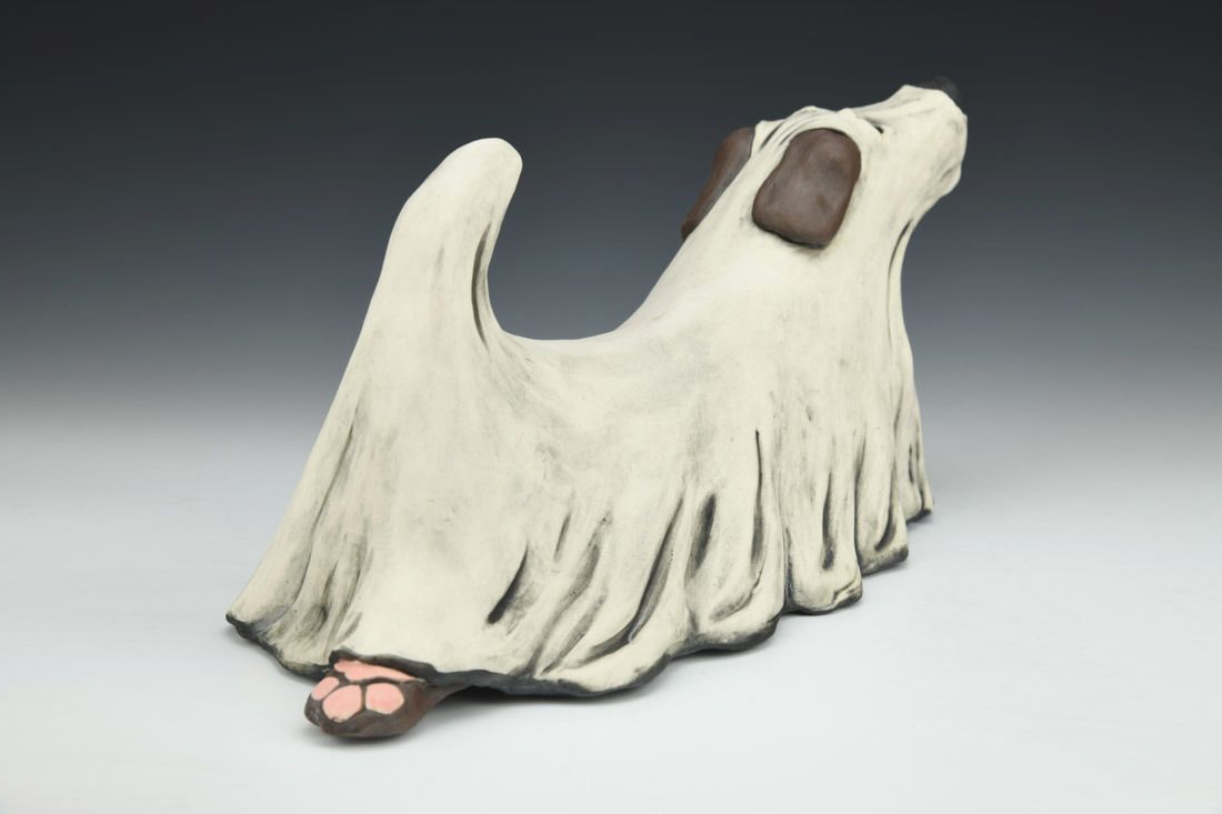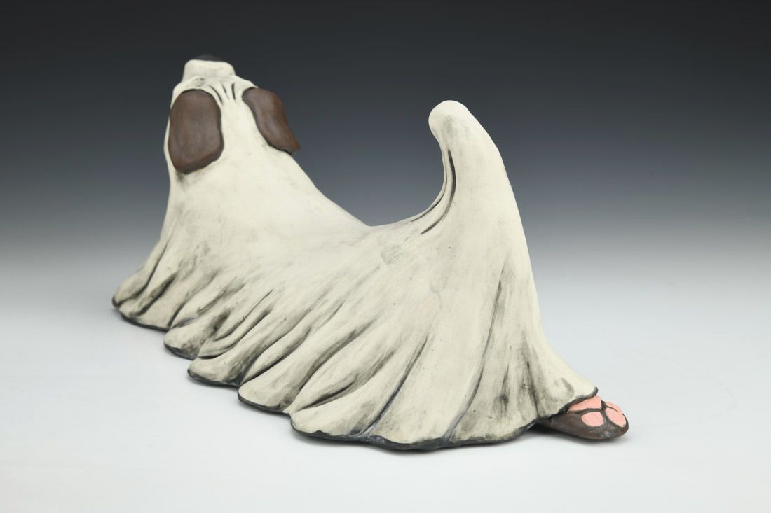Porcelain, hand built with slabs and coils, underglaze, oxidation fired, 7.5 x 12.5 x 6 inches.