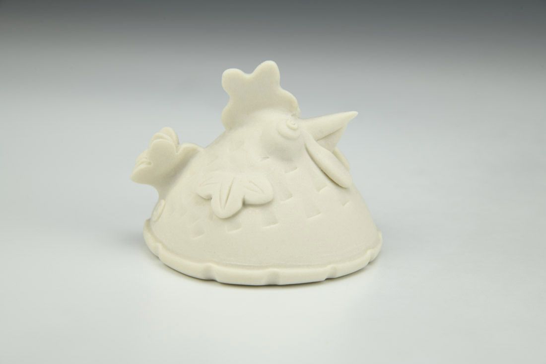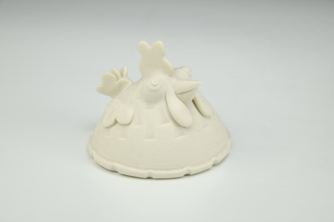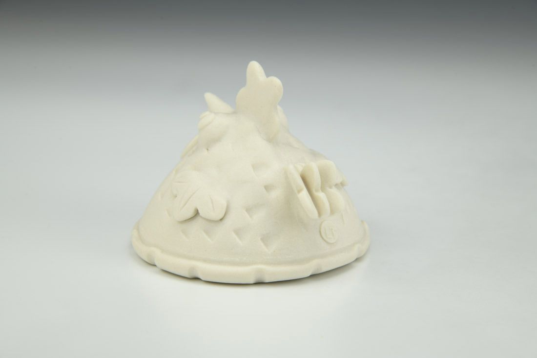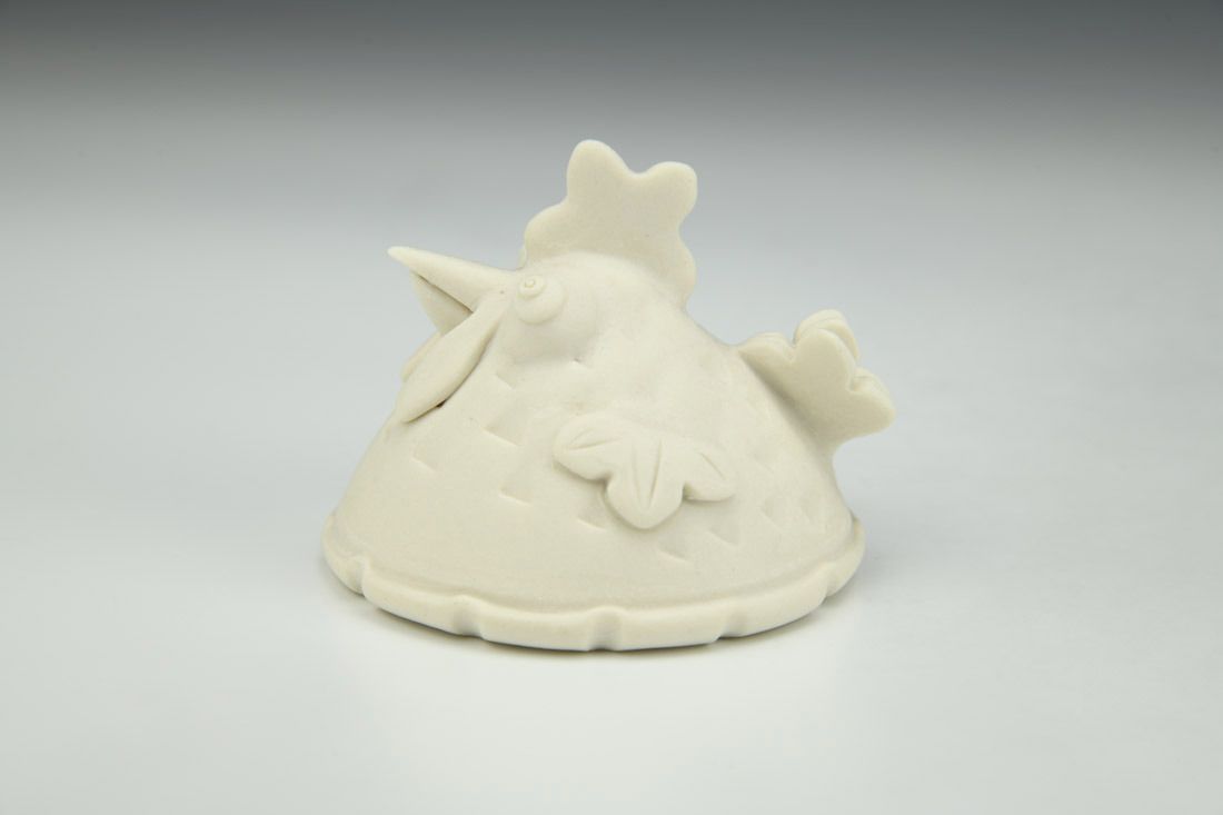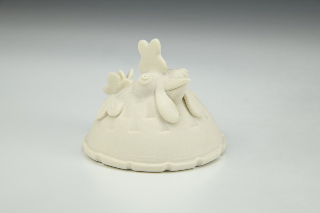 Porcelain, hand built with slabs and sculpted elements, mid-range electric fired, 2.5 x 3 x 3 inches.