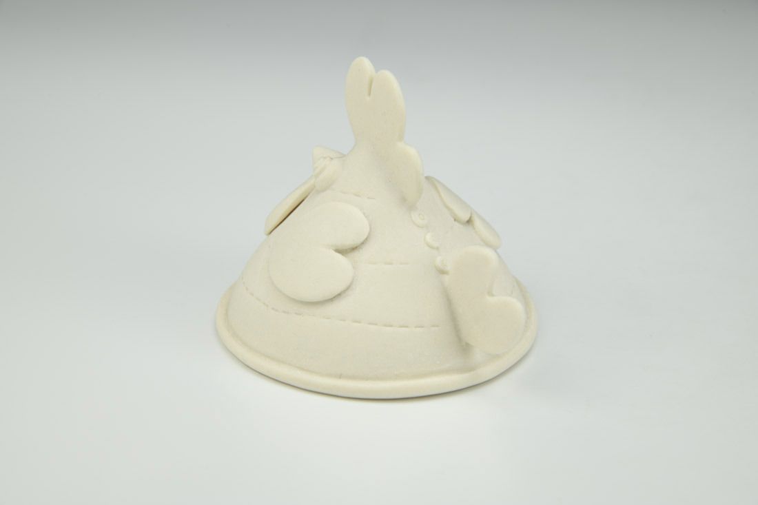 Porcelain, hand built with slabs and sculpted elements, mid-range electric fired, 2.5 x 3.25 x 3 inches.