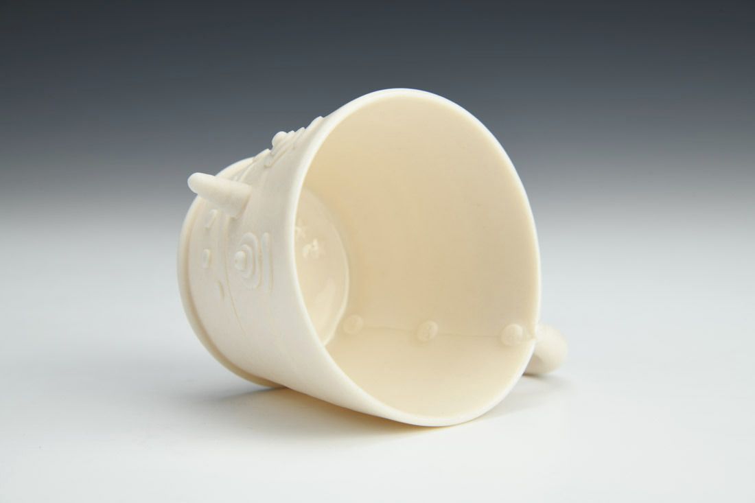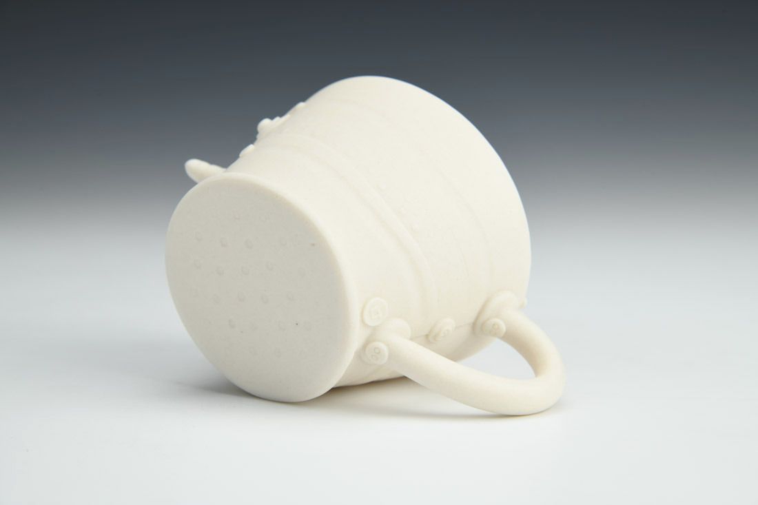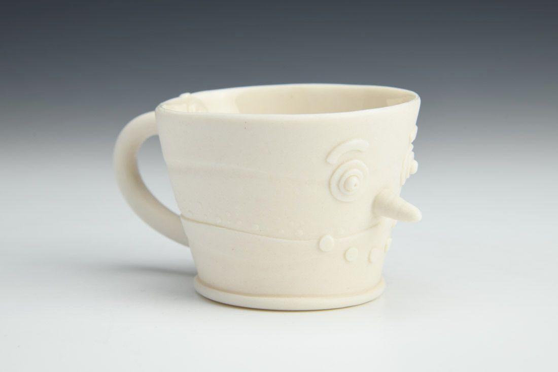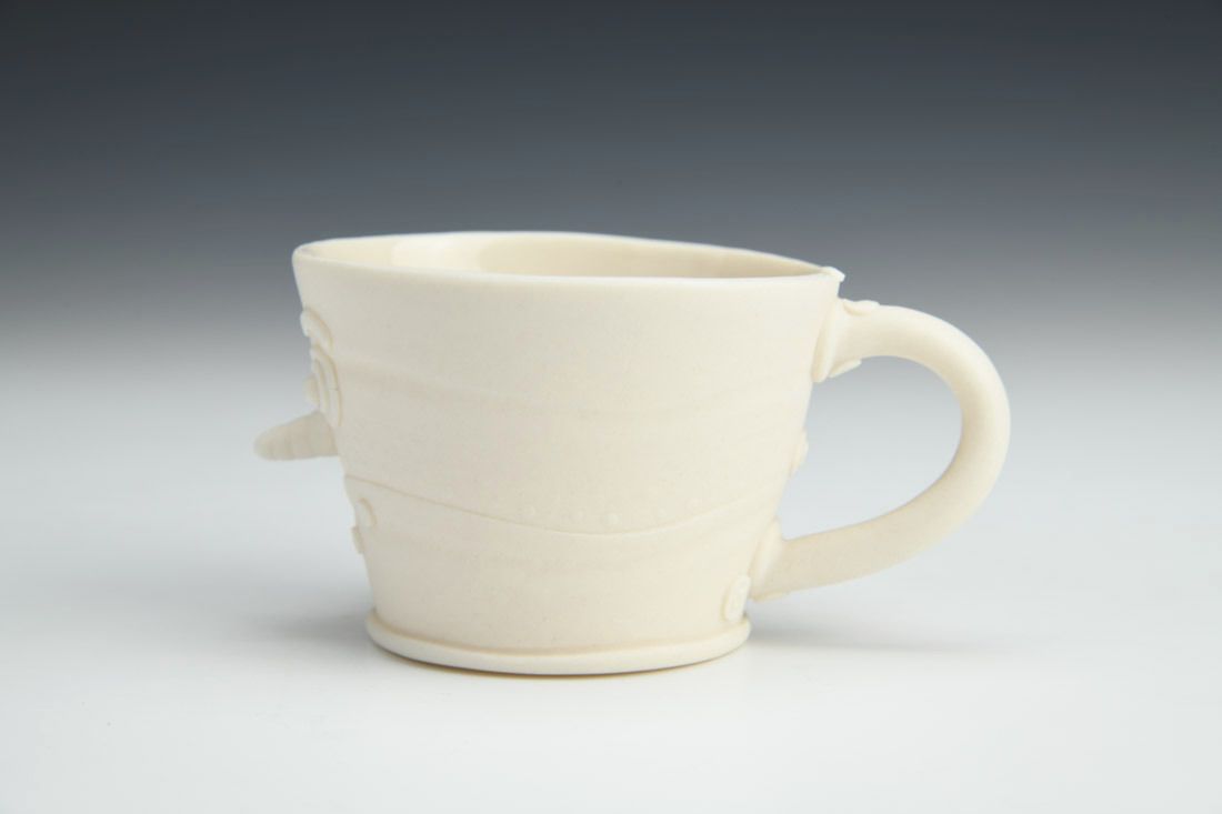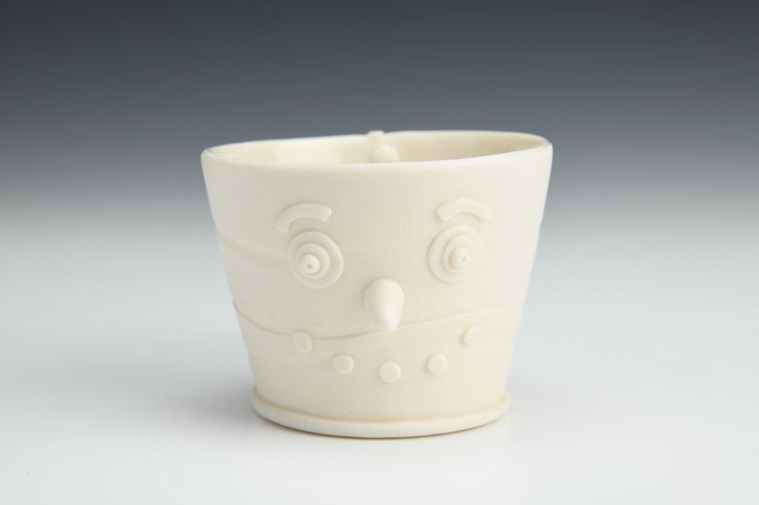 Porcelain, hand built with slabs and sculptural elements, clear glaze, cone 5 electric fired, 2.25 x 4.5 x 3 inches.