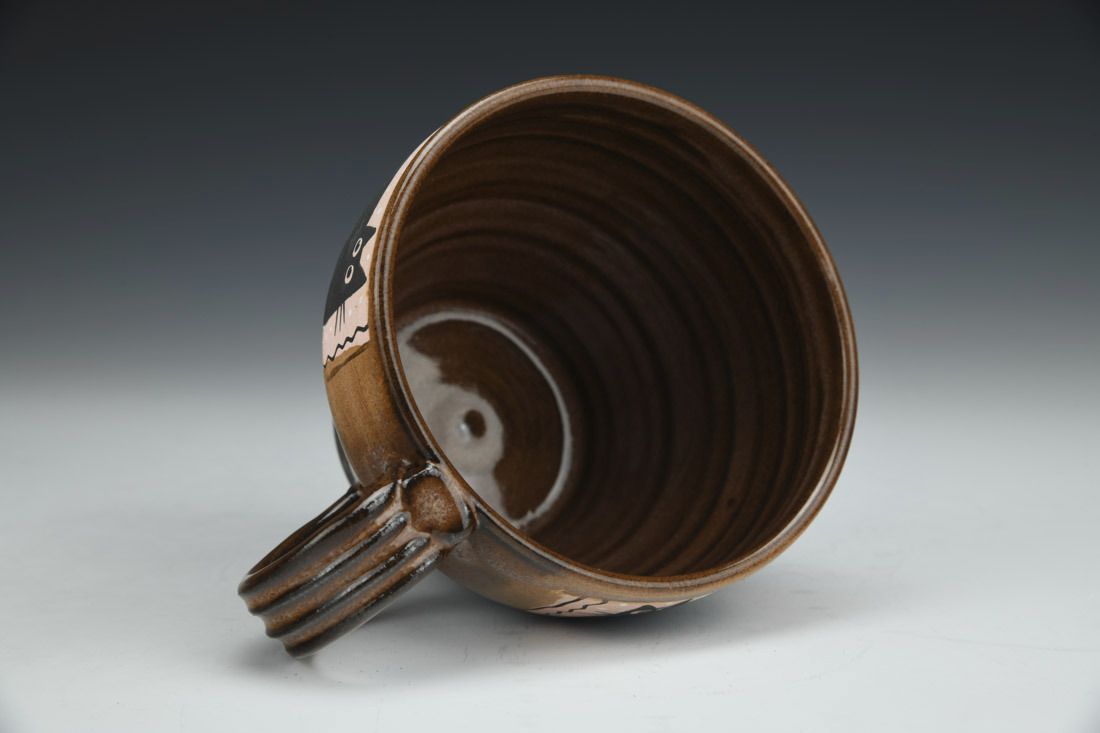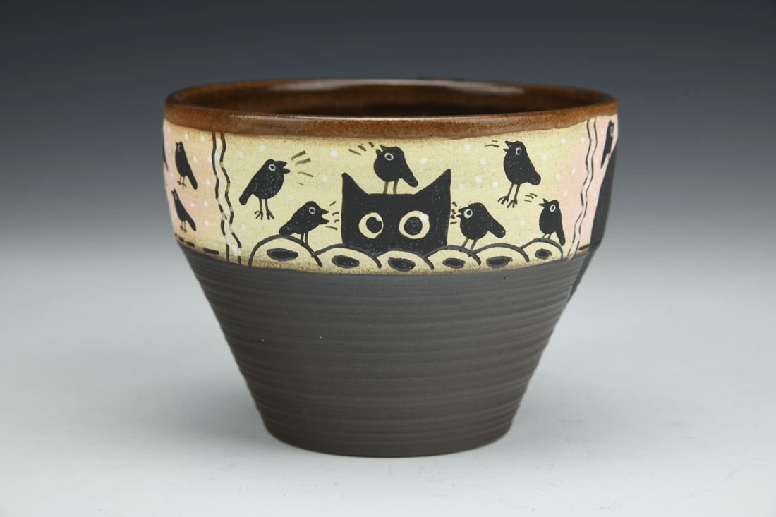 Stoneware, wheel thrown, hand carved, hand painted, underglaze, glaze, cone 6 fired, 3.25 x 5.25 x 4 inches.