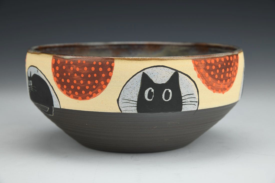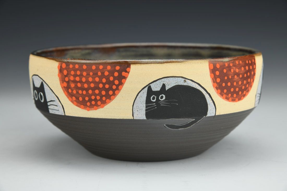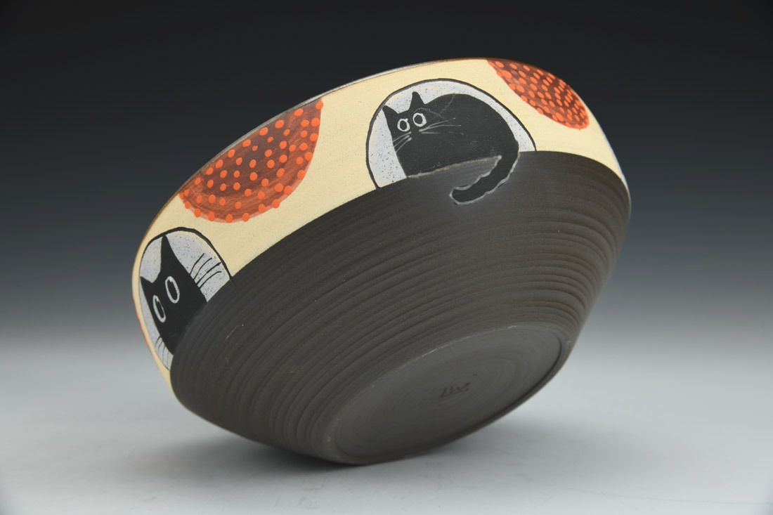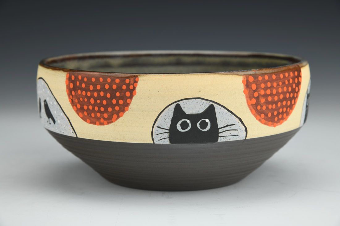 Stoneware, wheel thrown, hand painted, underglaze, glaze, cone 6 fired, 2.75 x 6.25 x 6.25 inches.