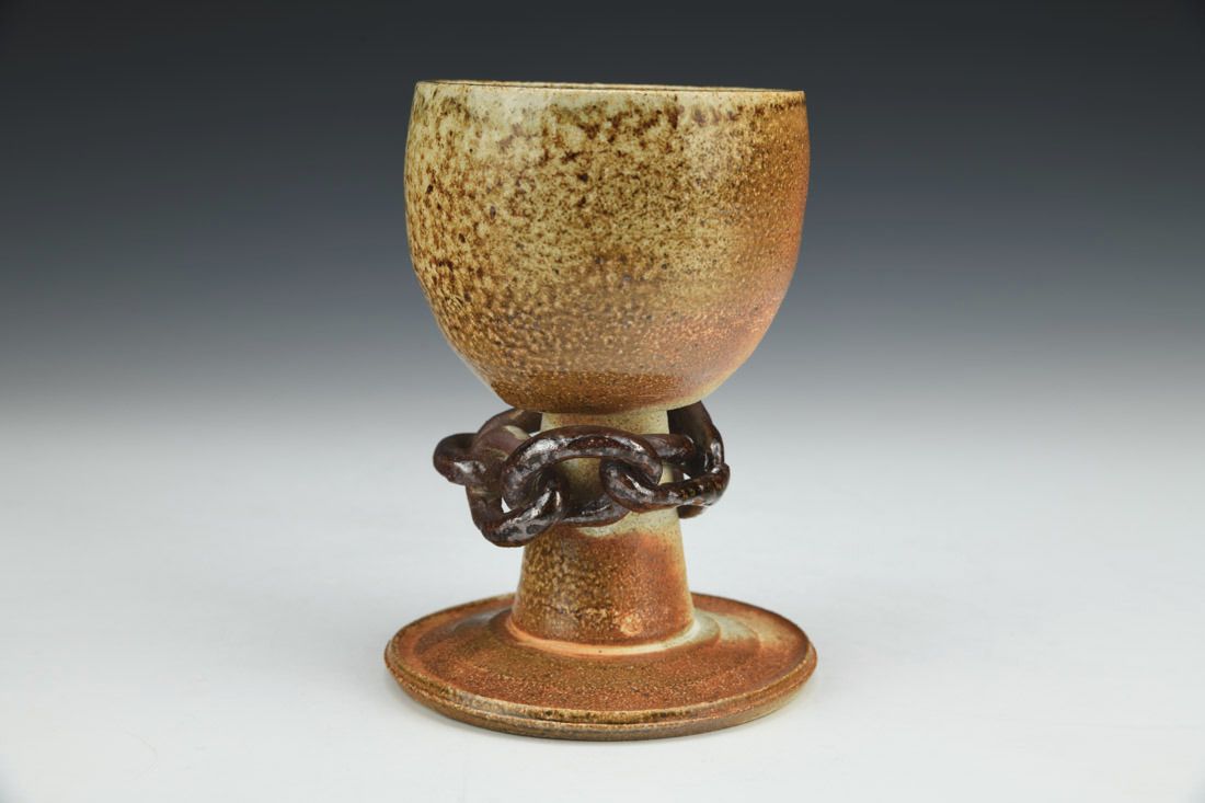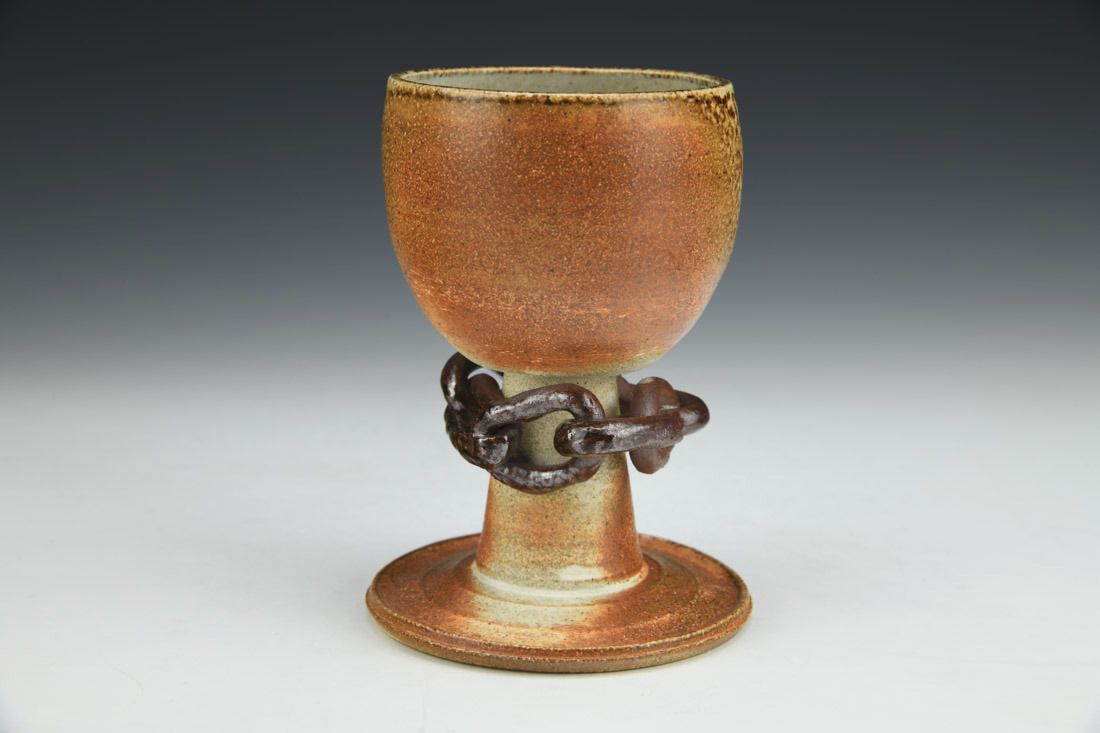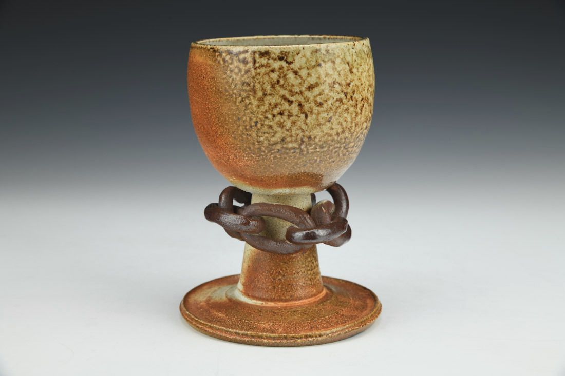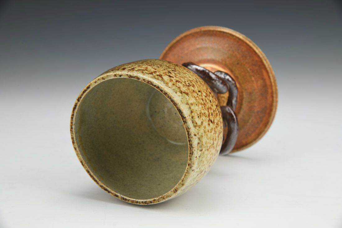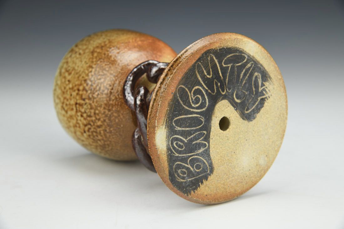 Mid-range stoneware, wheel thrown and altered, gas soda fired, 5.25 x 3.25 x 3.25 inches.