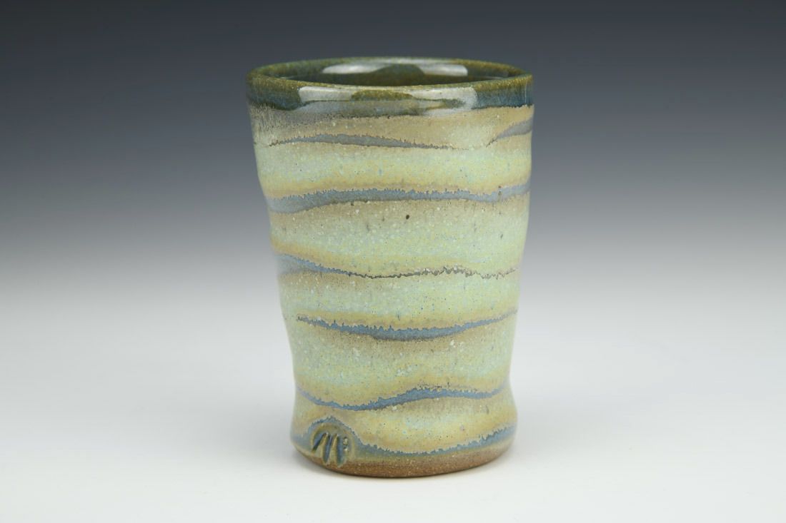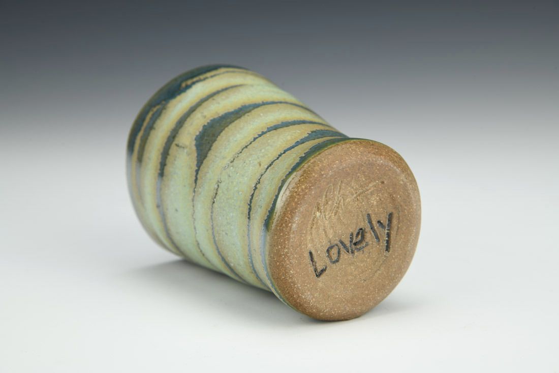 Stoneware, wheel thrown and altered, cone 6 oxidation fired, 3.75 x 2.75 x 2.75 inches.