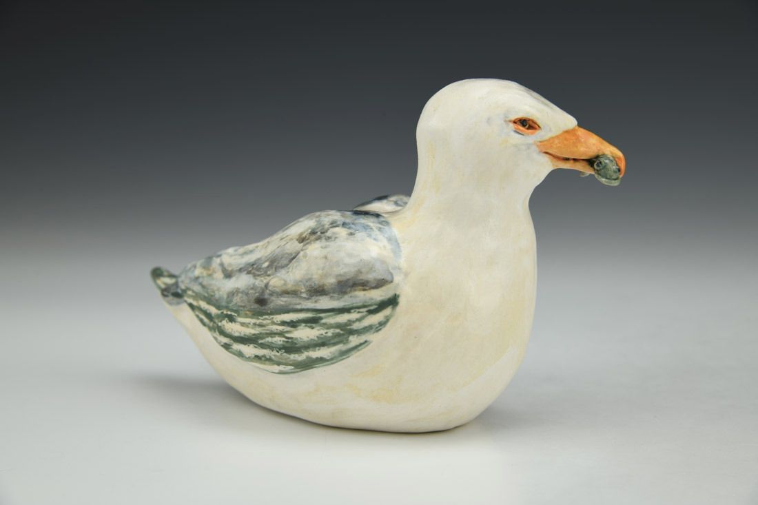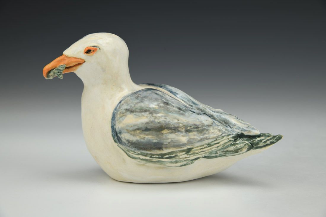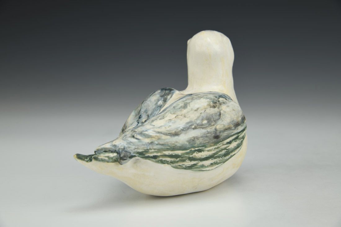Porcelain, hand built, cone 6 electric fired, 3.5 x 5.5 x 2.75 inches.