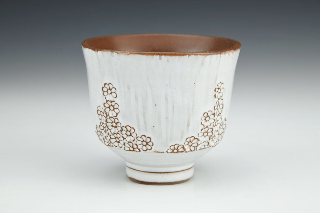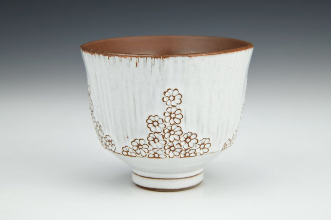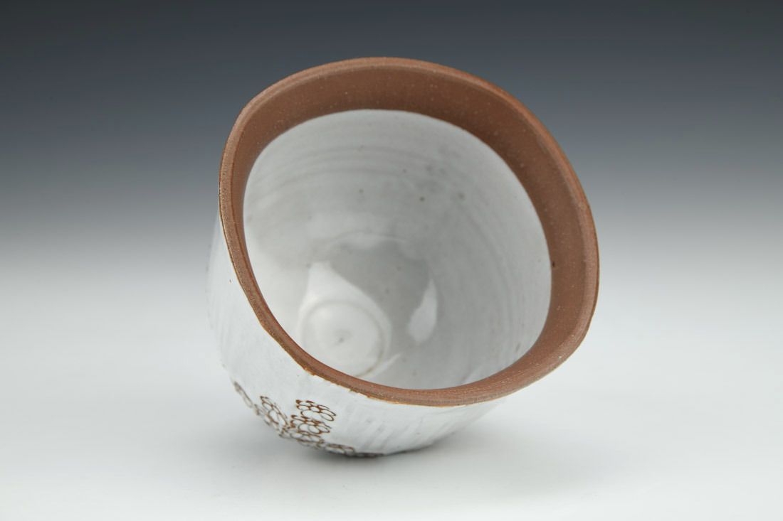 Red stoneware, wheel thrown, carved, glaze, cone 5 fired, 2.75 x 3.25 x 3.25 inches.