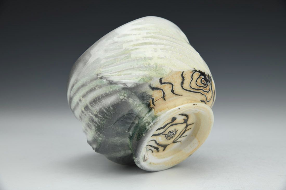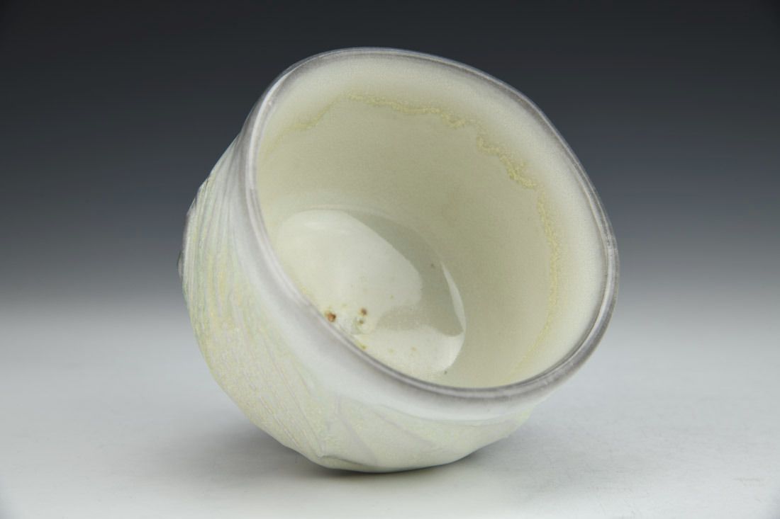 Woodfire porcelain, wheel thrown, soda fired, 3 x 4 x 4 inches.