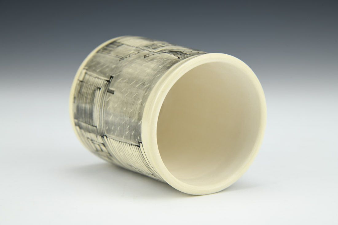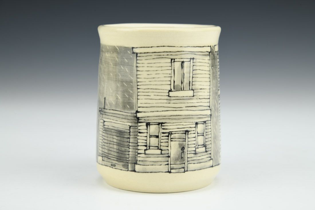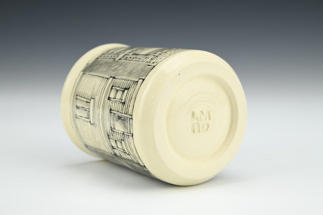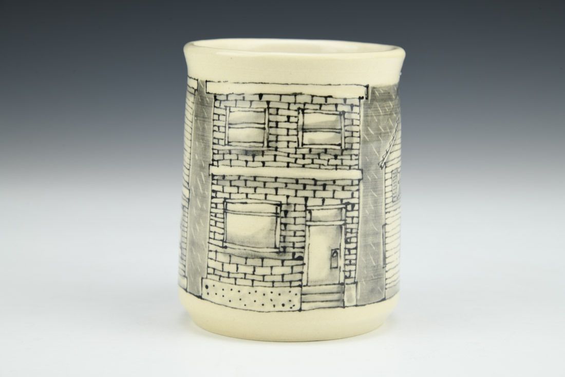 Off-white stoneware, wheel thrown, hand painted oxides, underglaze, cone 6 oxidation fired, 3.25 x 2.75 x 2.75 inches.