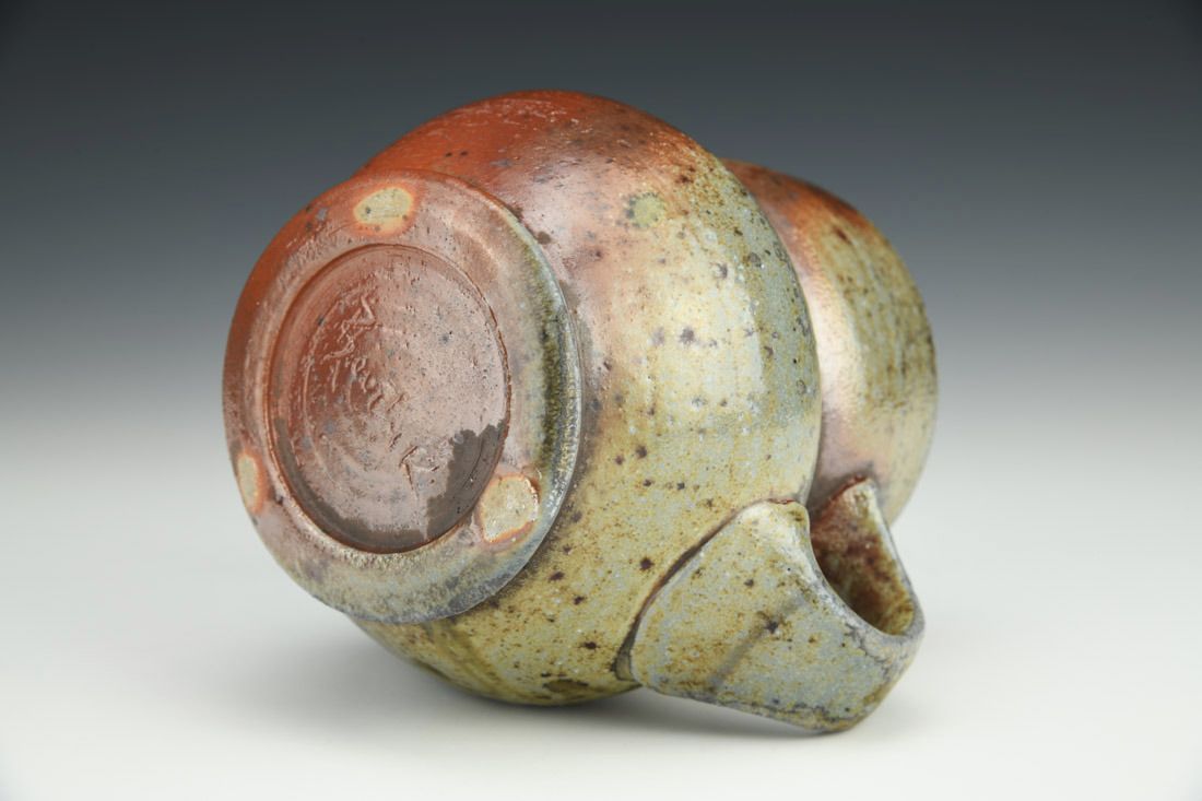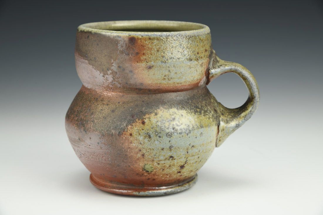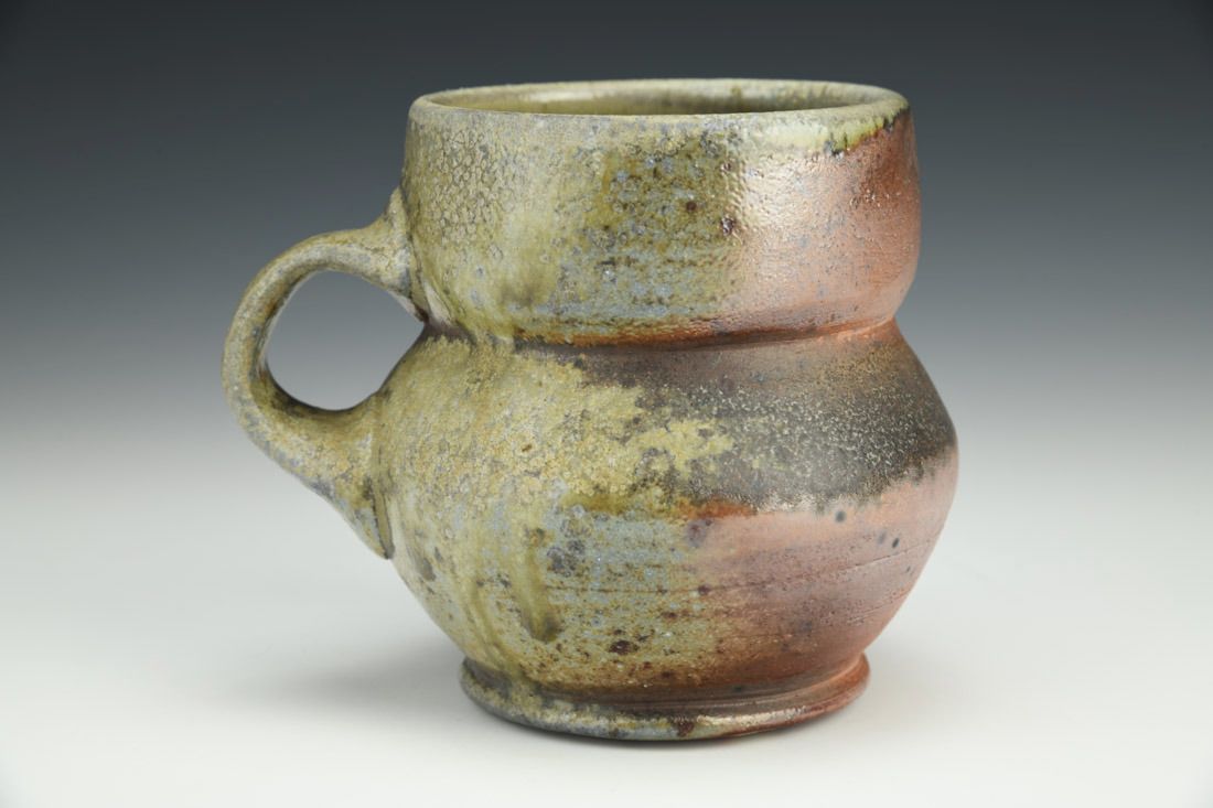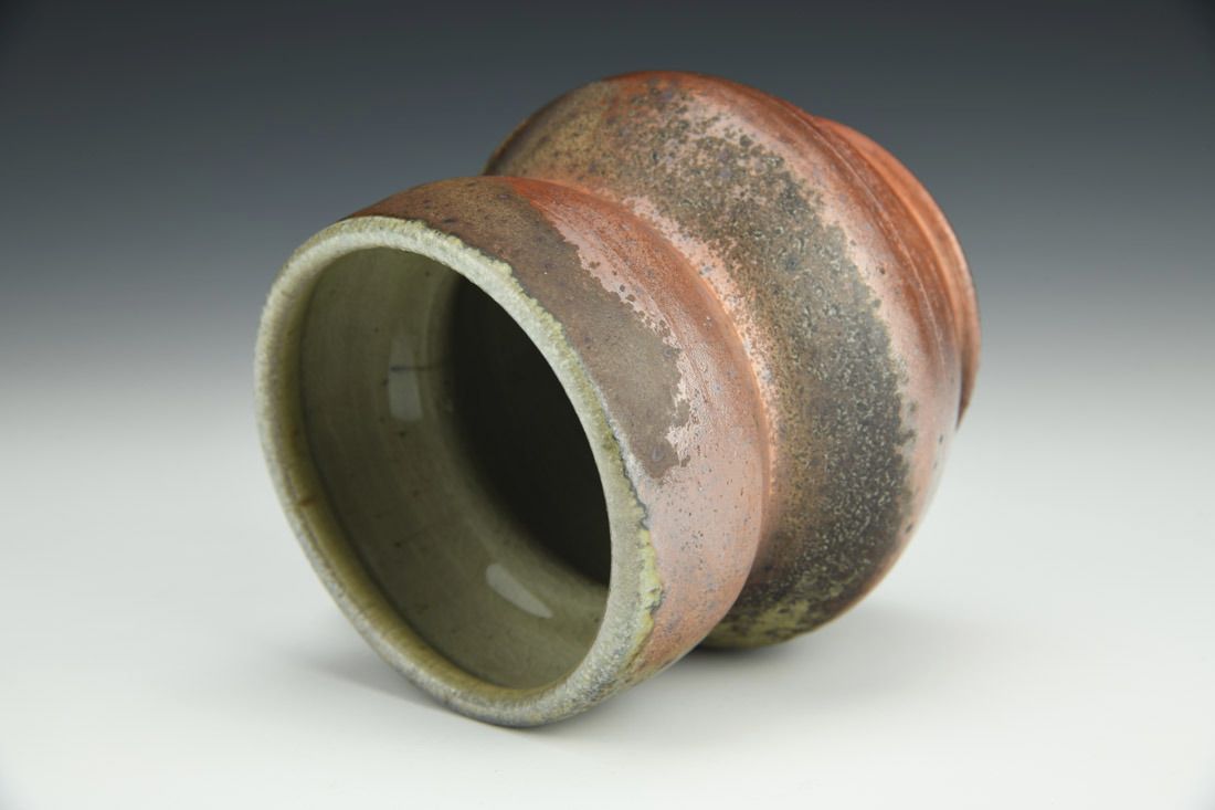 White stoneware, wheel thrown, celadon interior glaze, cone 12 woodfired, 4.5 x 5 x 4 inches.