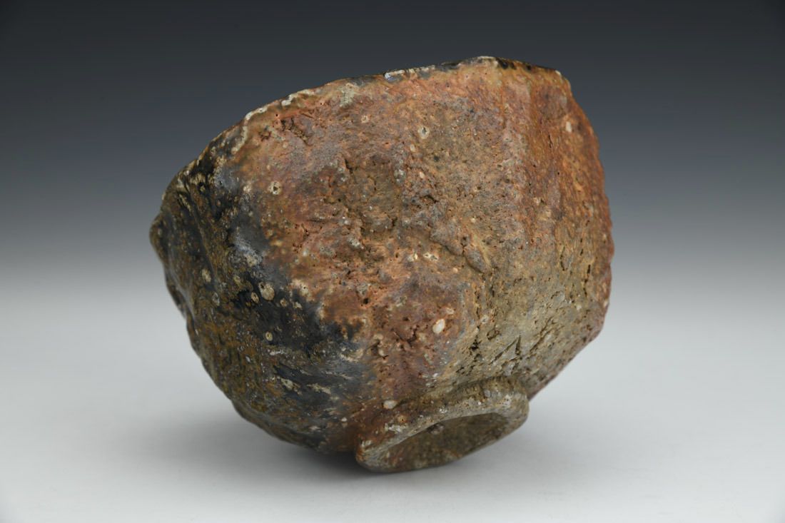 Stoneware, hand built, anagama woodfired, 3.5 x 5 x 5 inches.