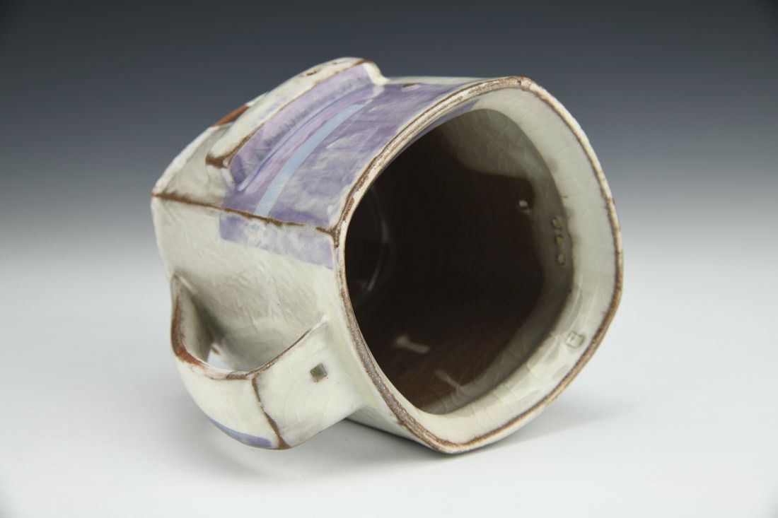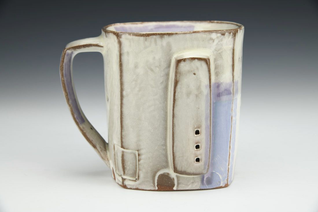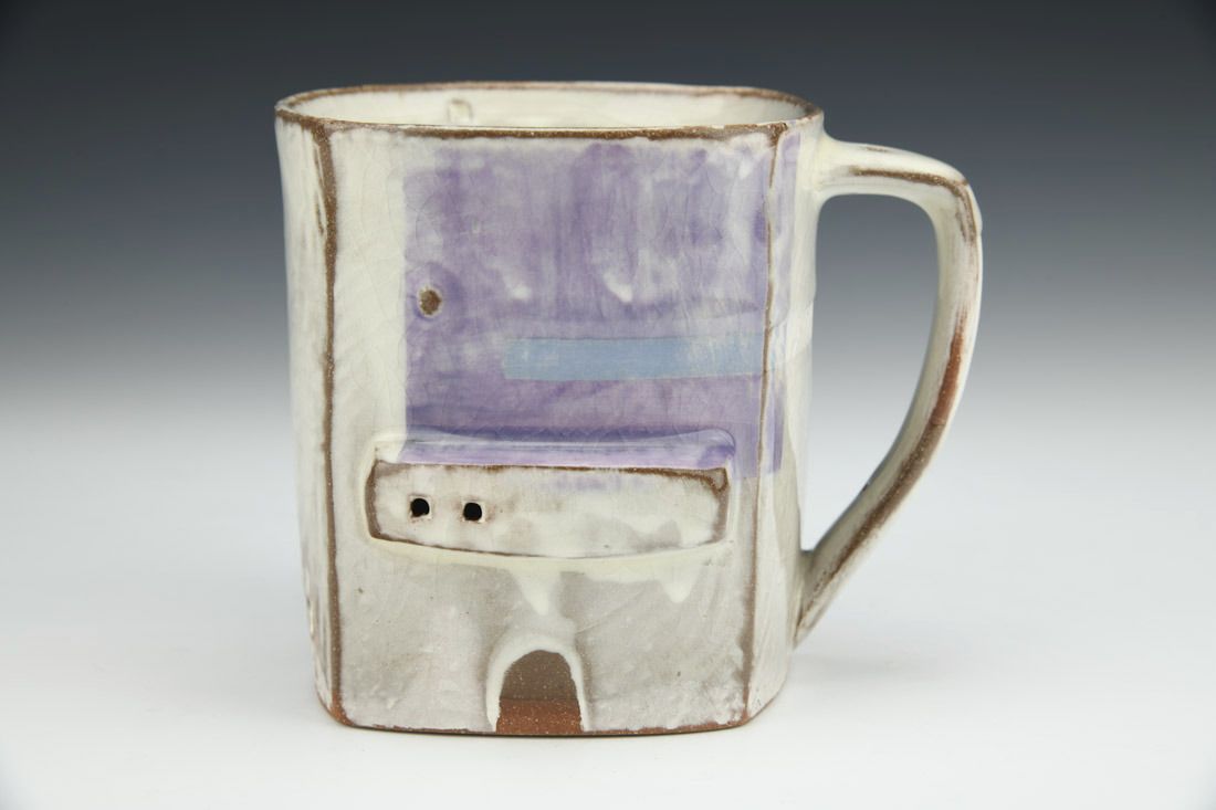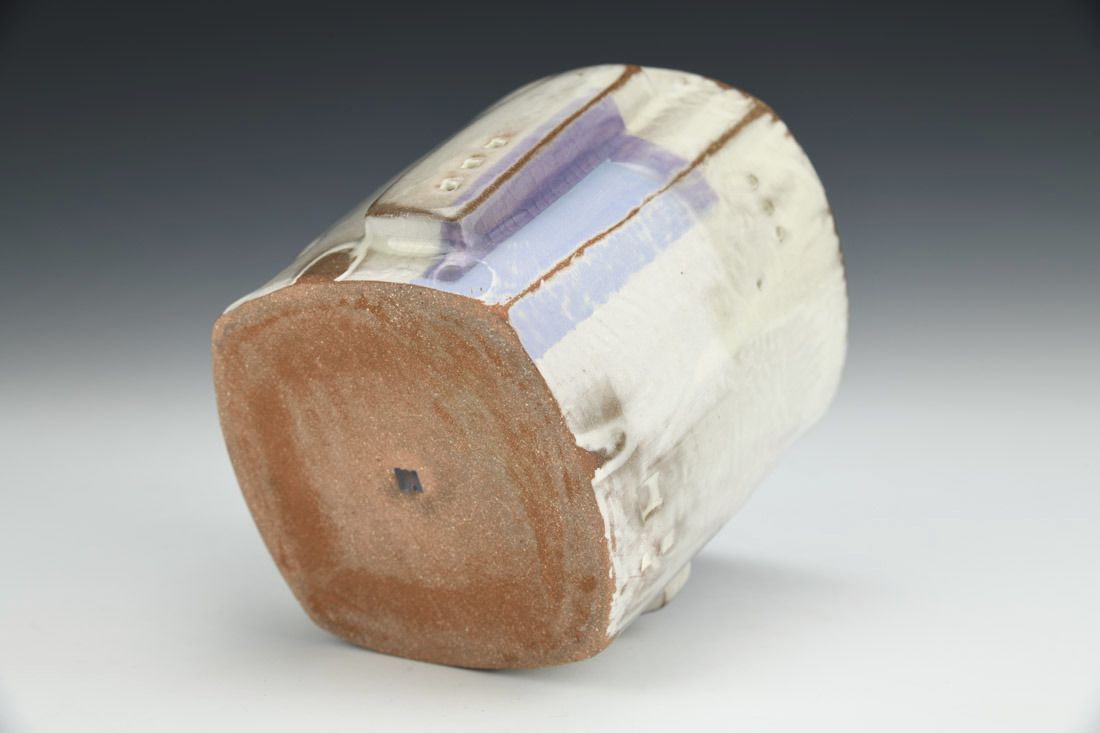 Red earthenware, hand built, resist markings, sanded and polished, porcelain slip, underglaze, glaze, cone 6 oxidation fired, 4.25 x 5 x 4.25 inches.