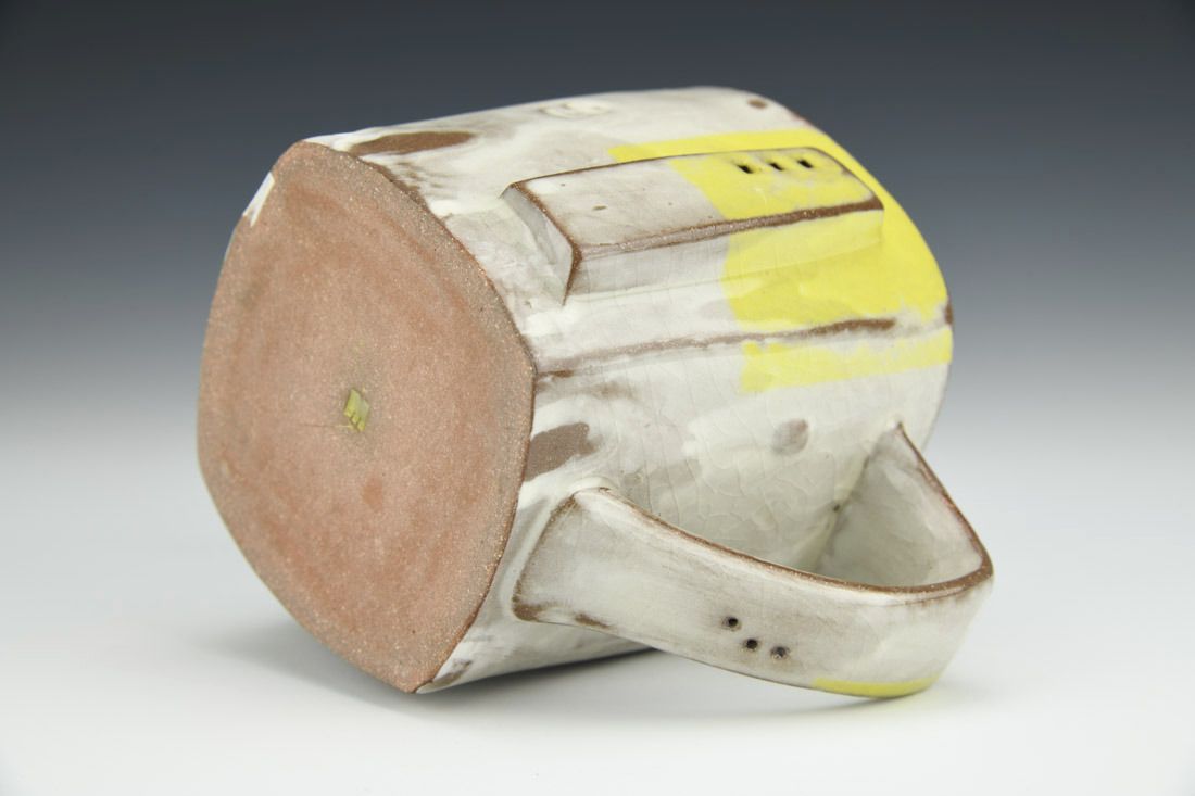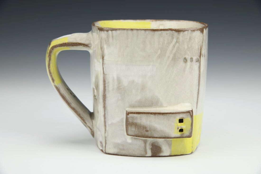 Red earthenware, hand built, resist markings, sanded and polished, porcelain slip, underglaze, glaze, cone 6 oxidation fired, 3.75 x 5 x 4 inches.