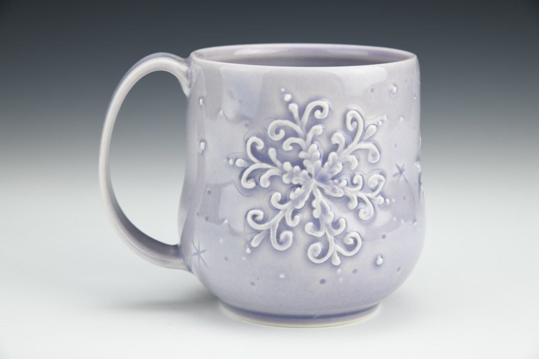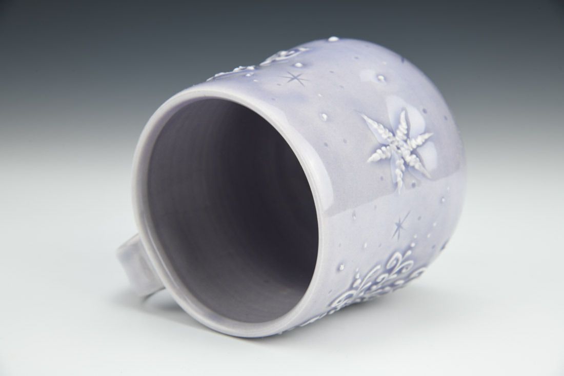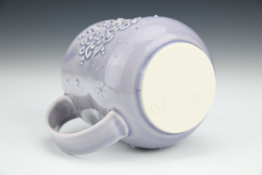 English Grolleg mid-range porcelain, wheel thrown, cake decorated with porcelain slip, carved, mid-range fired, 4 x 4.75 x 3.5 inches.