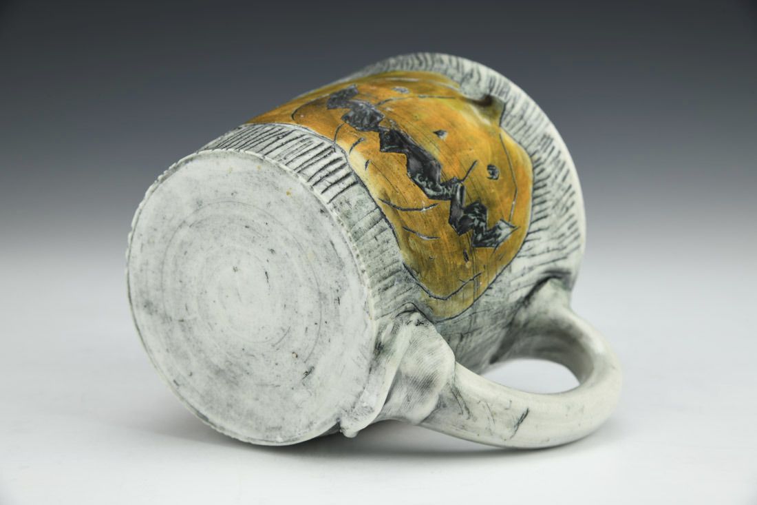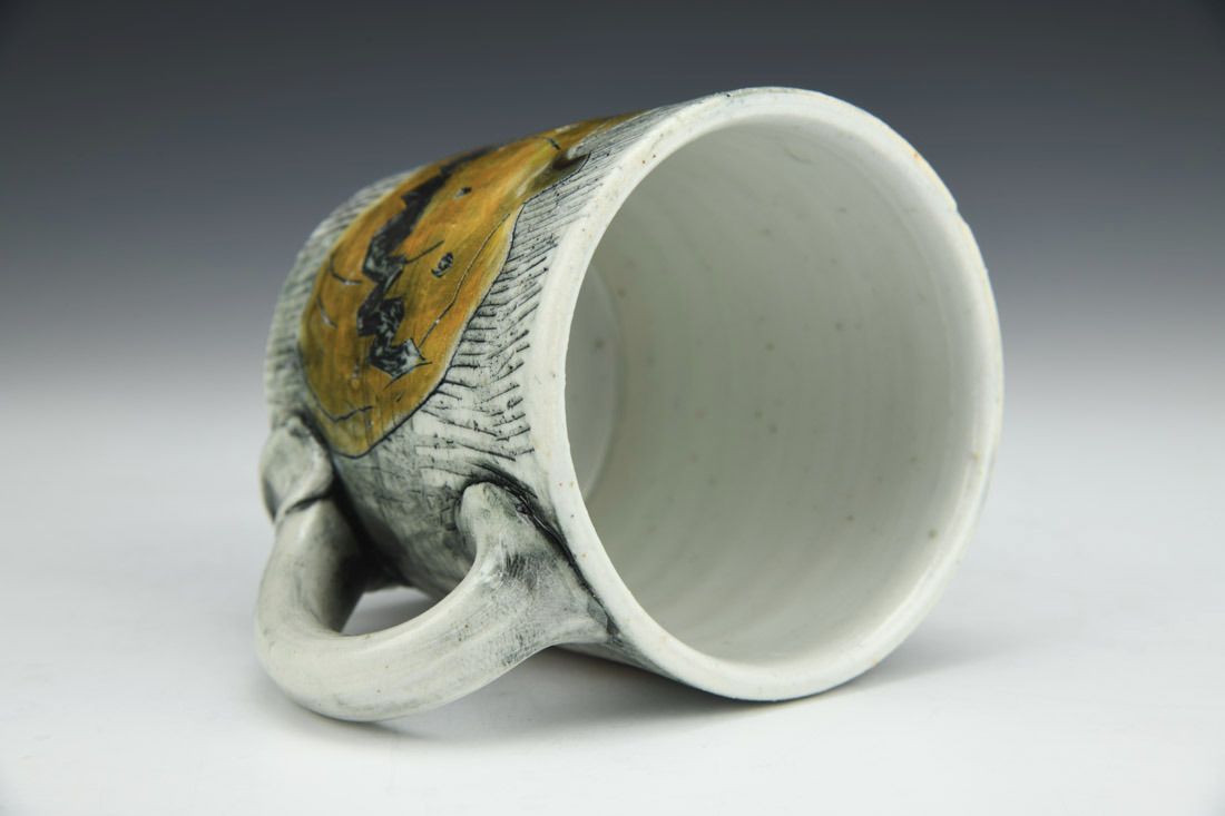 Porcelain, wheel thrown, carved, stain, wash, underglaze, glaze, cone 10 reduction fired, 4 x 5 x 3.75 inches.