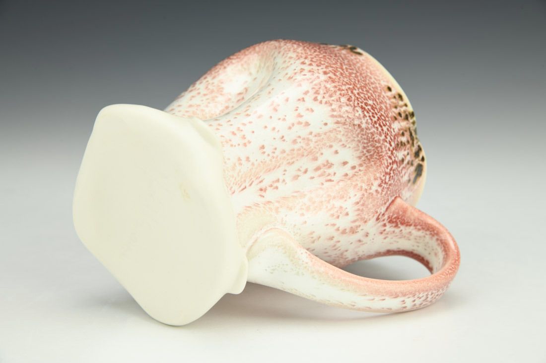Porcelain, wheel thrown and altered, cone 11 oxidation fired, 4.5 x 5 x 3 inches.