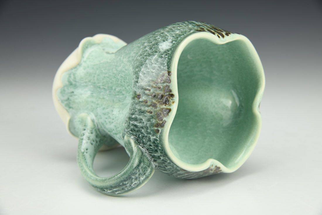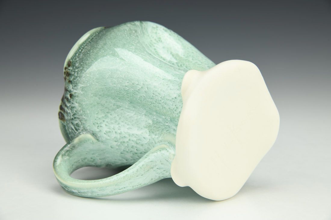 Porcelain, wheel thrown and altered, cone 11 oxidation fired, 4.5 x 5 x 3 inches.