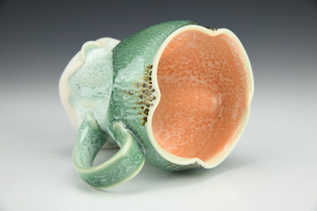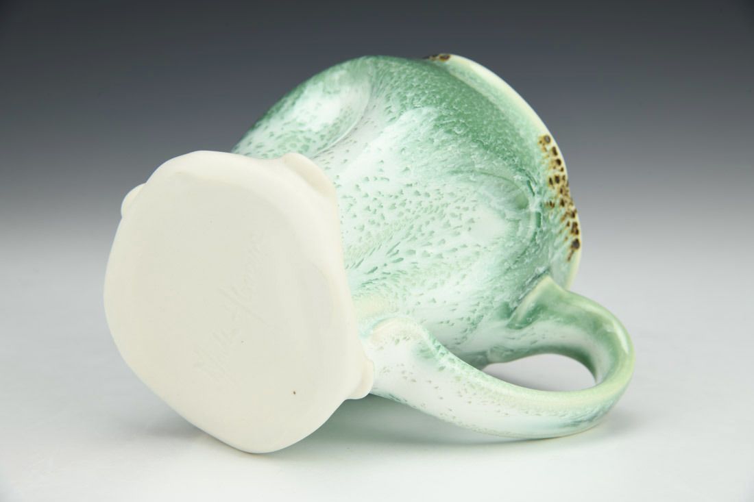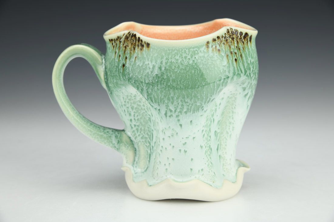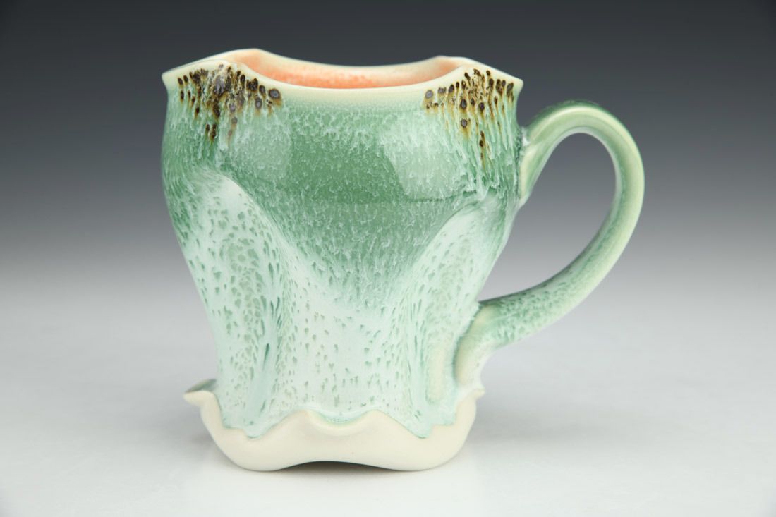 Porcelain, wheel thrown and altered, cone 11 oxidation fired, 4.5 x 5 x 3 inches.