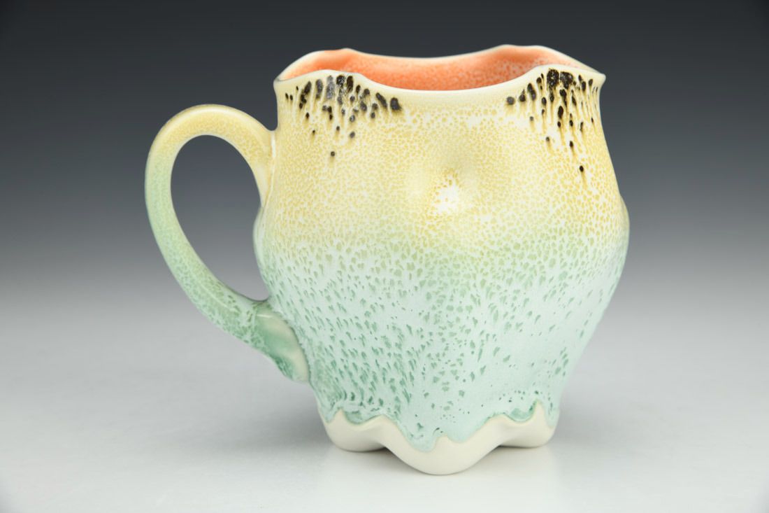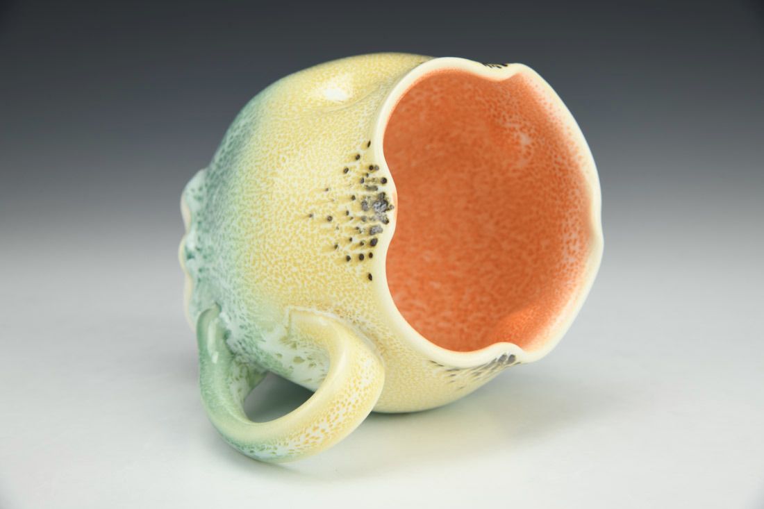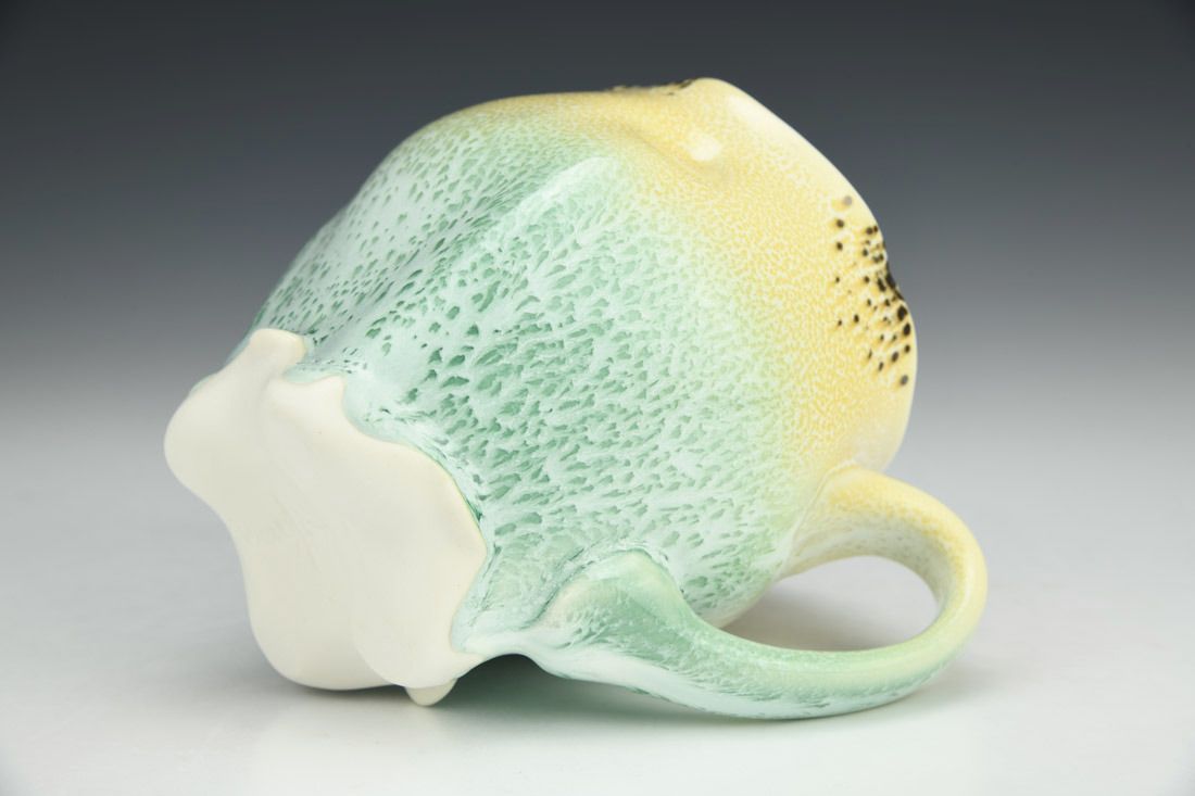 Porcelain, wheel thrown and altered, cone 11 oxidation fired, 4.5 x 5 x 3 inches.