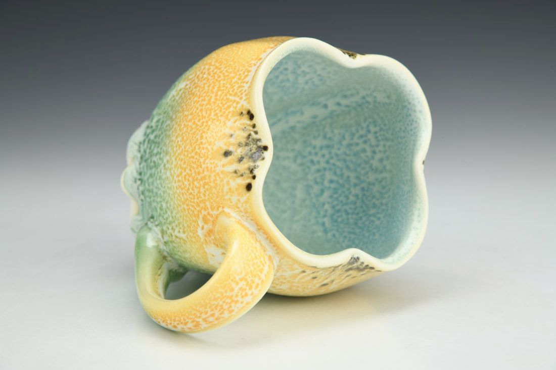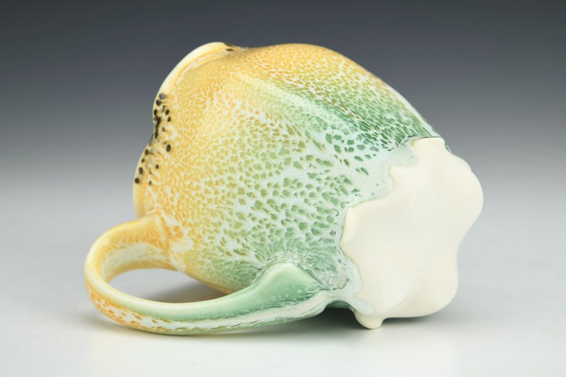 Porcelain, wheel thrown and altered, cone 11 oxidation fired, 4.5 x 5 x 3 inches.
