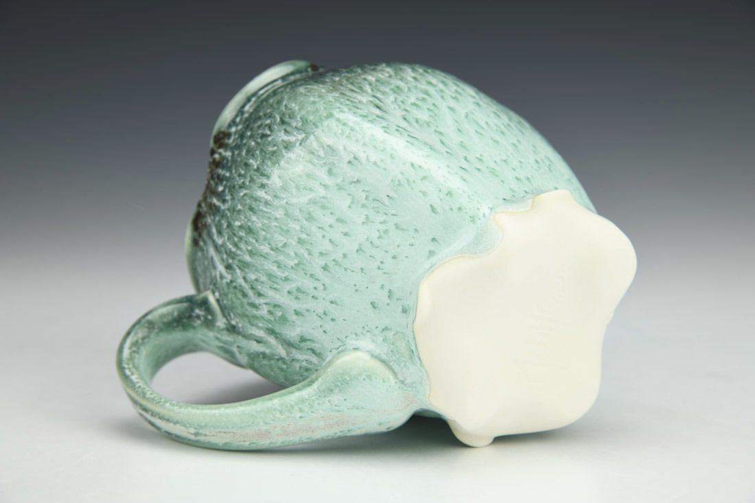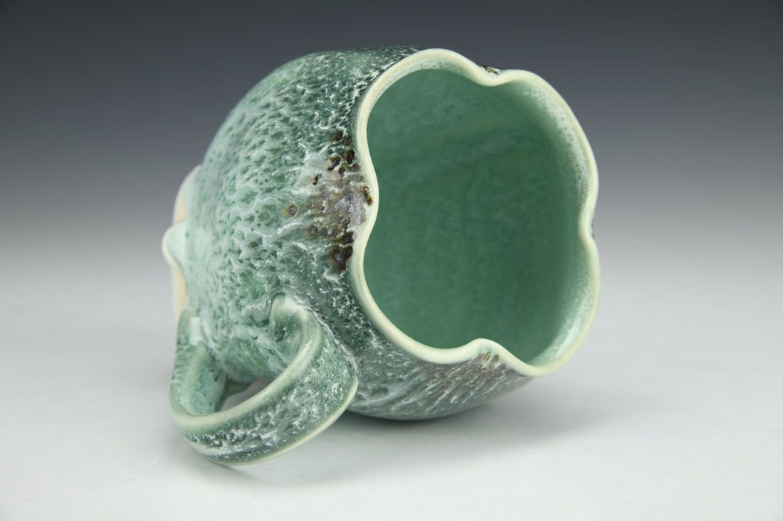 Porcelain, wheel thrown and altered, cone 11 oxidation fired, 4.5 x 5 x 3 inches.