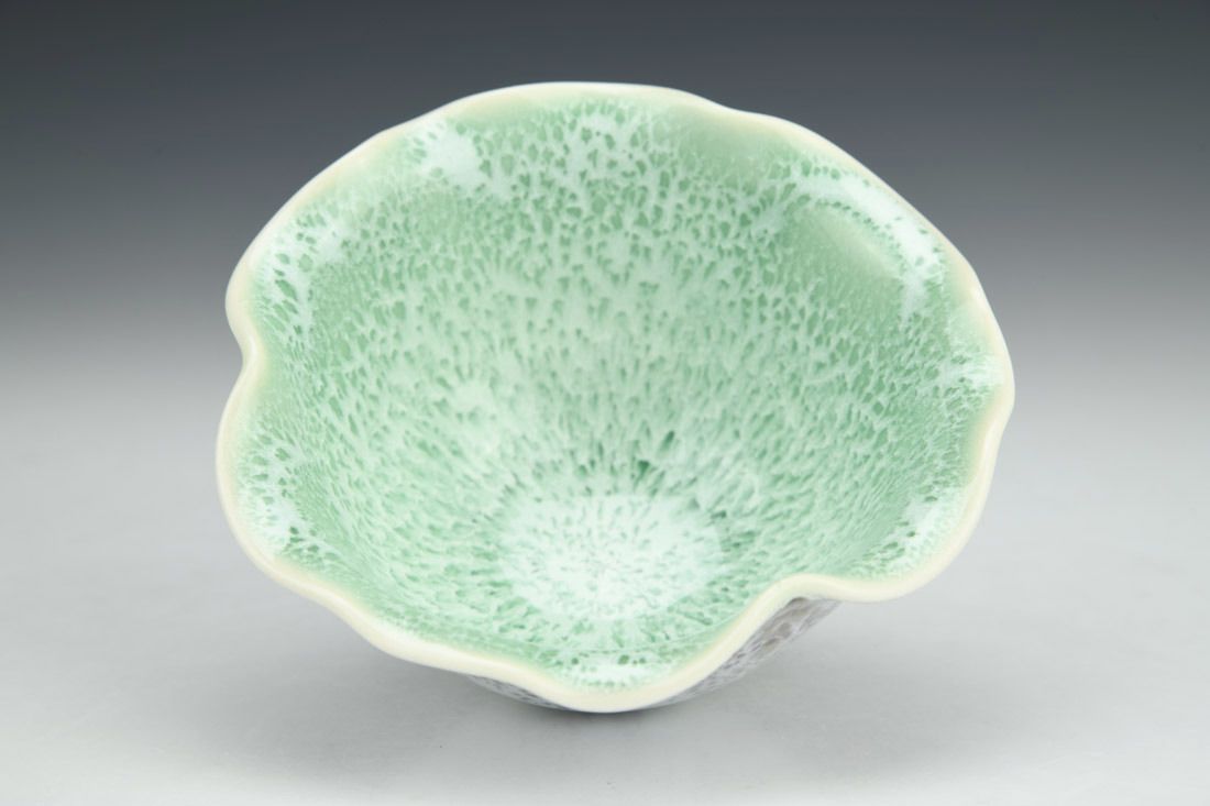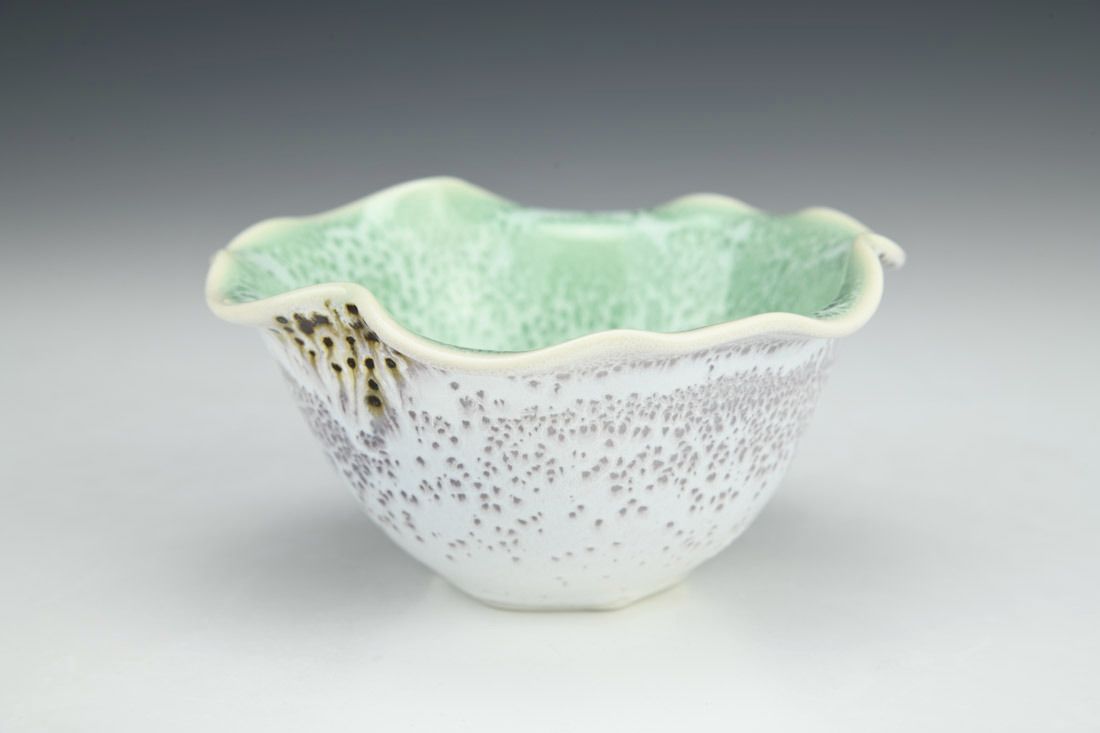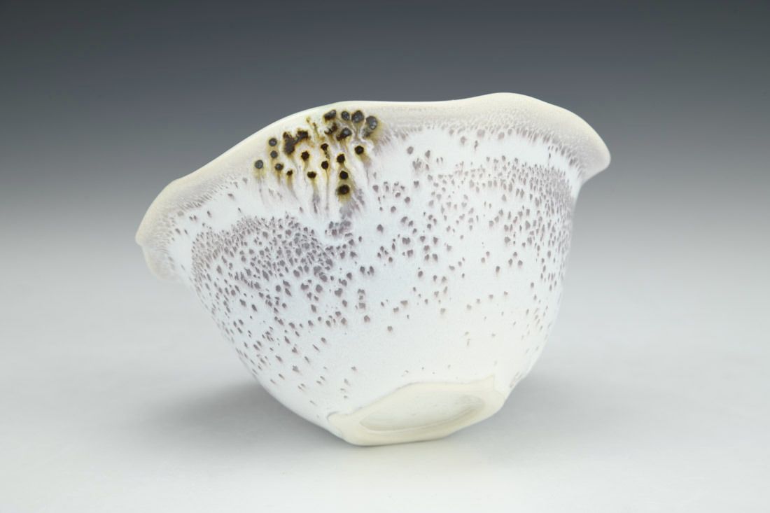 Porcelain, wheel thrown and altered, cone 11 oxidation fired, 2.25 x 4.5 x 4.5 inches.