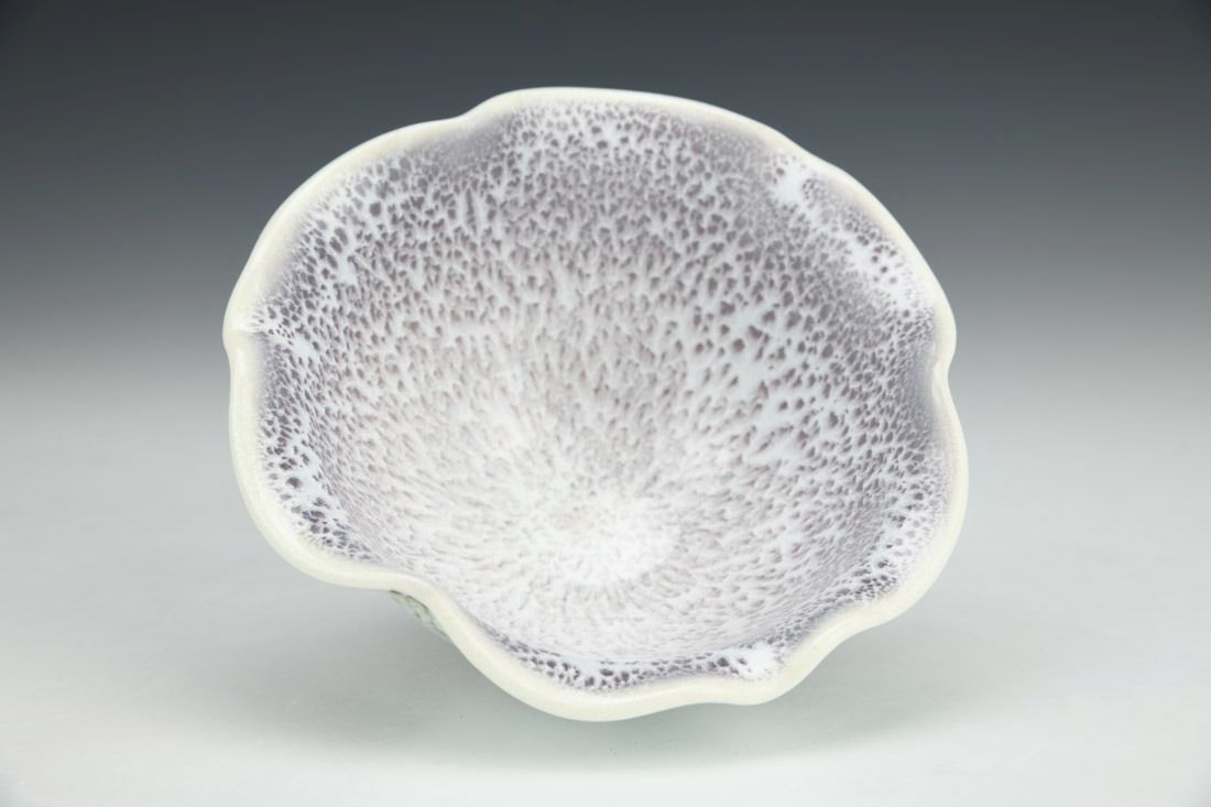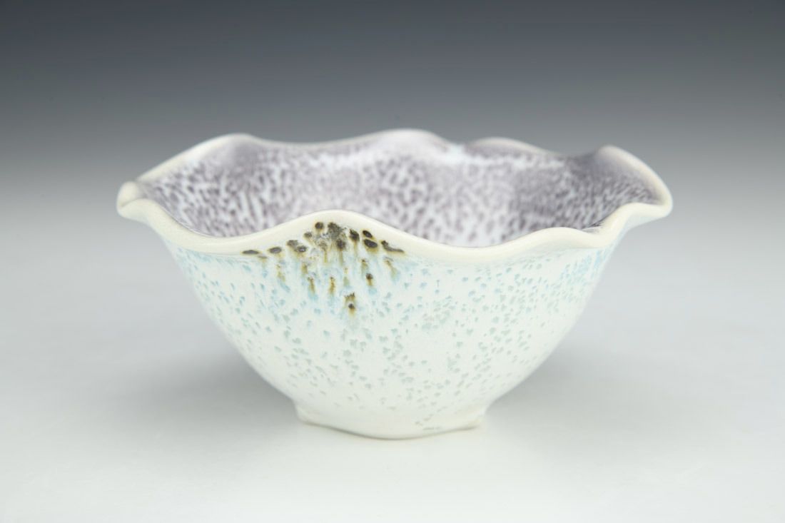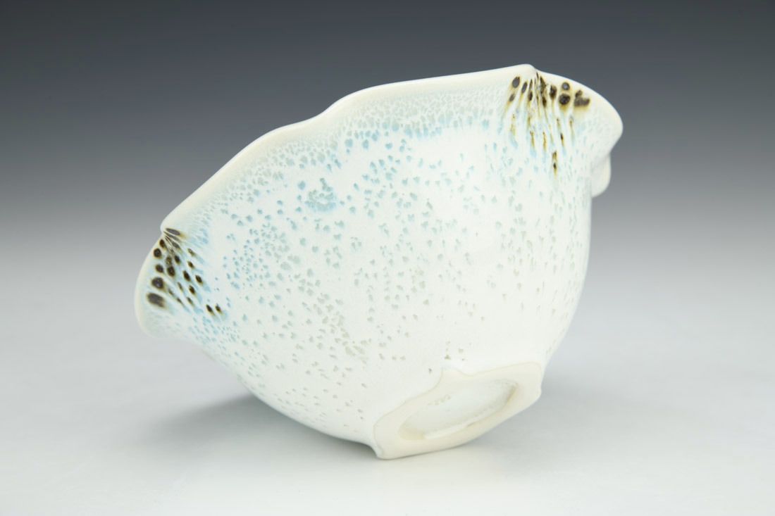 Porcelain, wheel thrown and altered, cone 11 oxidation fired, 2.25 x 4.5 x 4.5 inches.
