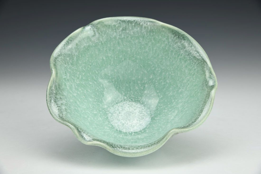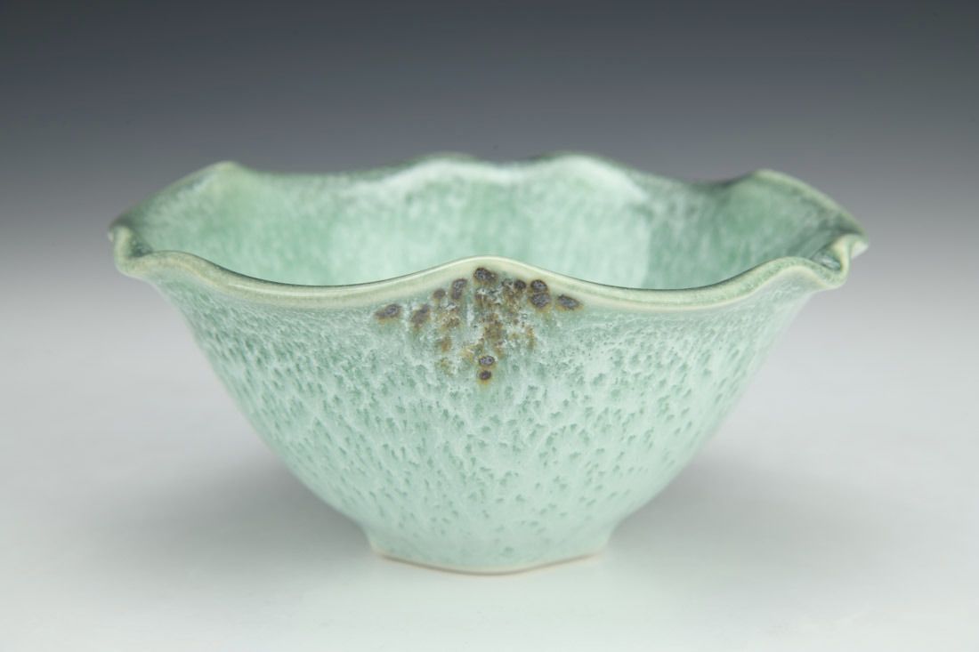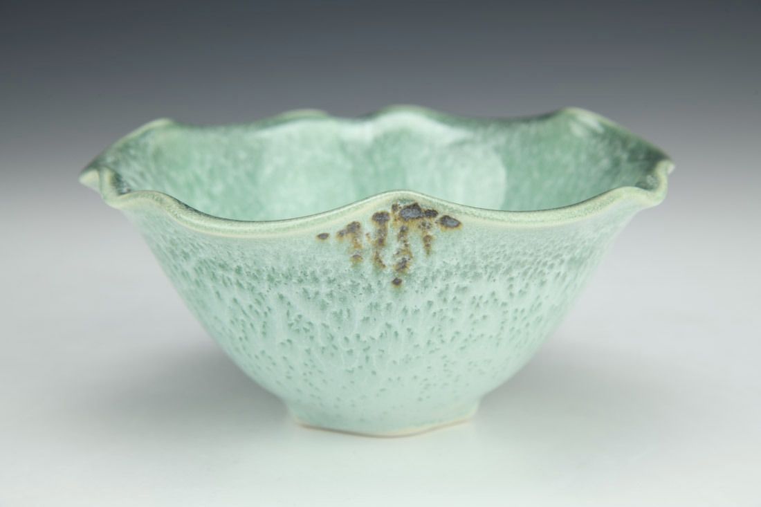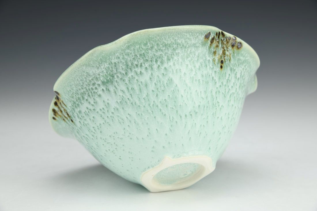 Porcelain, wheel thrown and altered, cone 11 oxidation fired, 2.5 x 5 x 5 inches.