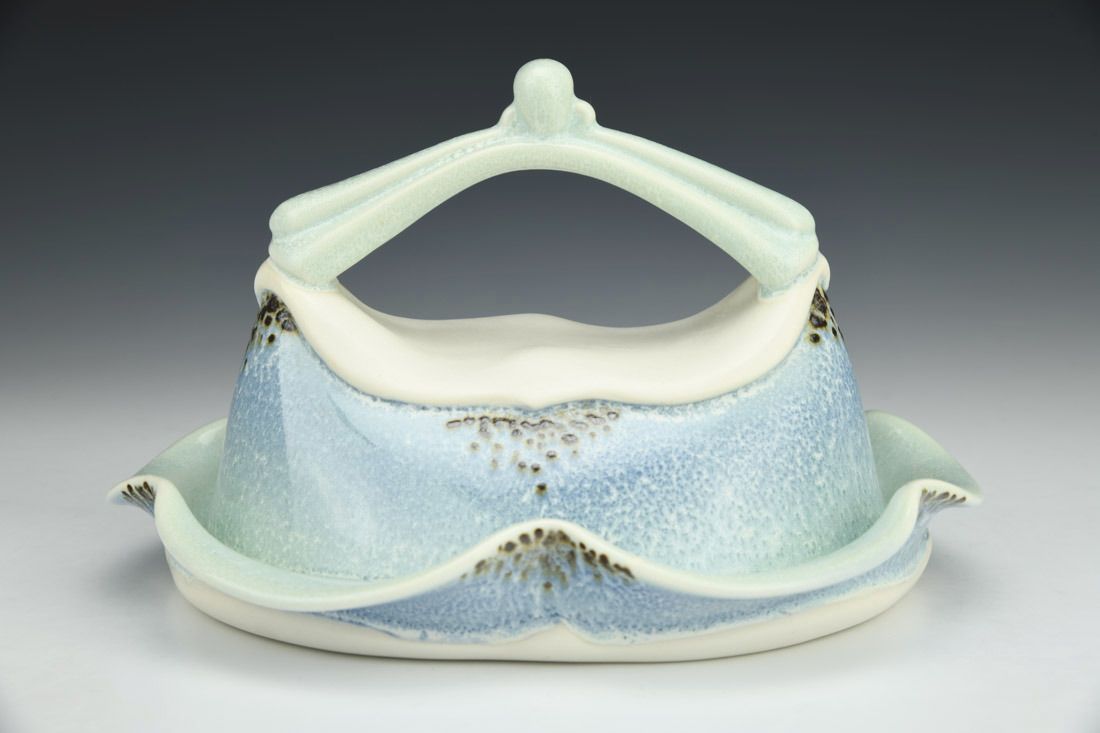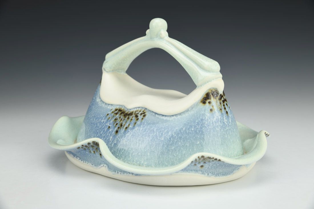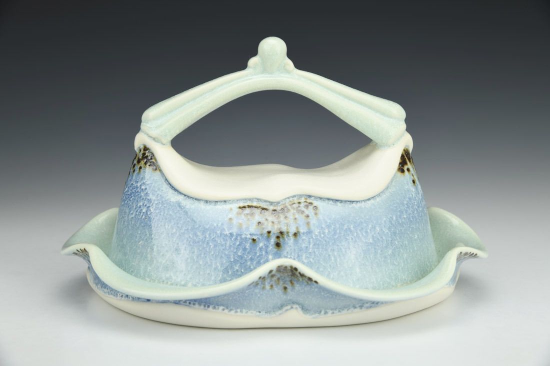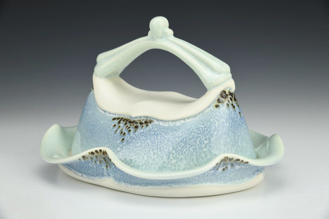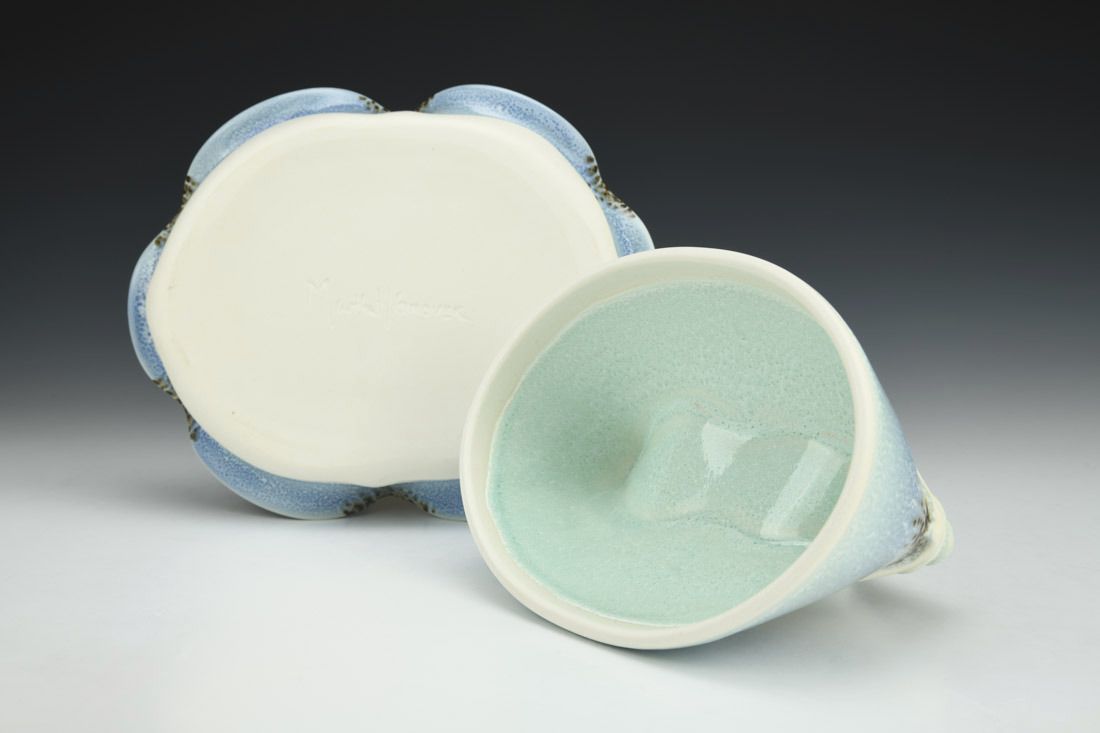 Porcelain, wheel thrown and altered, cone 11 oxidation fired, 6 x 8 x 6 inches.
