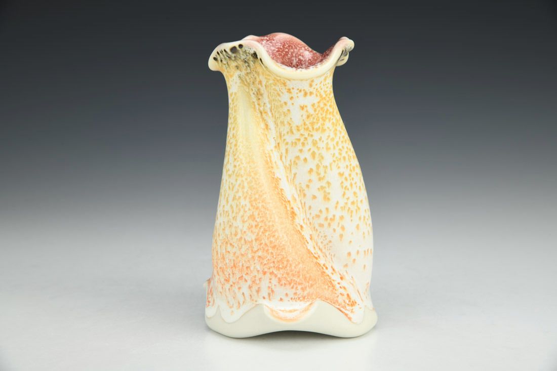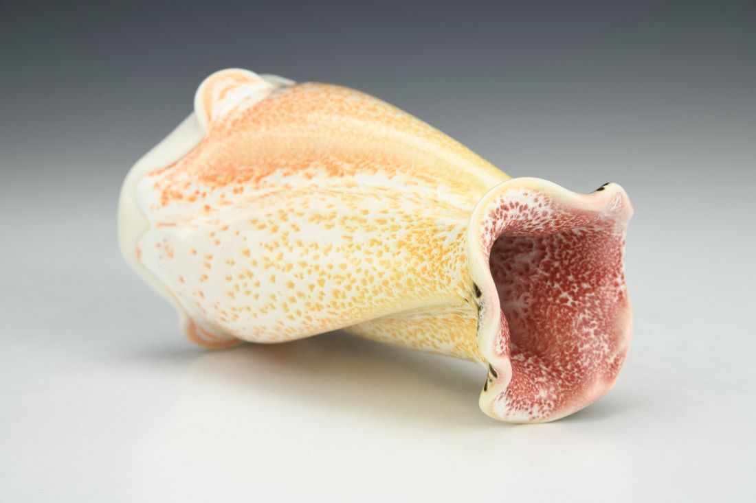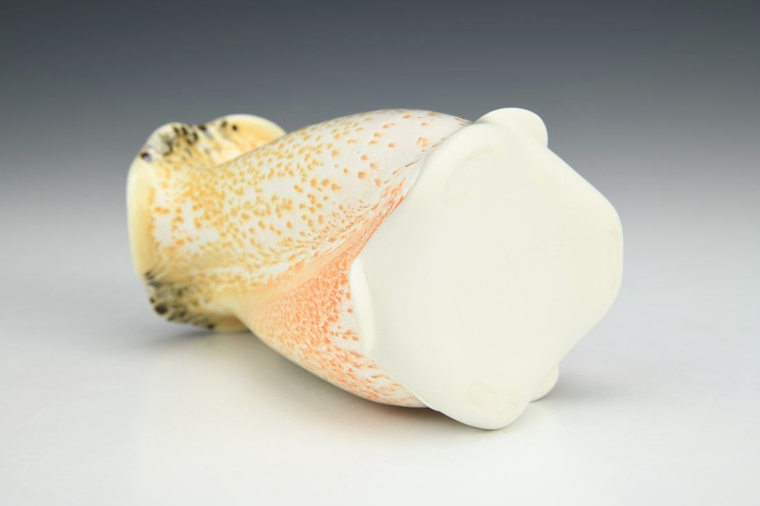 Porcelain, wheel thrown and altered, cone 11 oxidation fired, 5 x 3 x 3 inches.