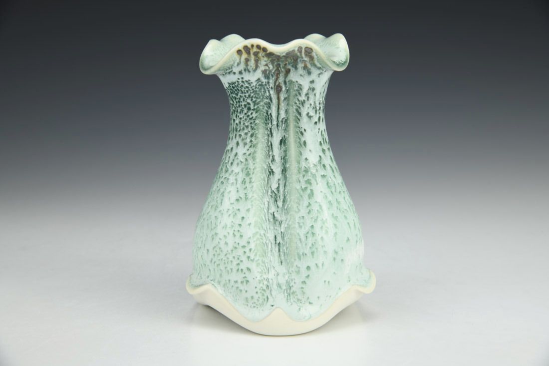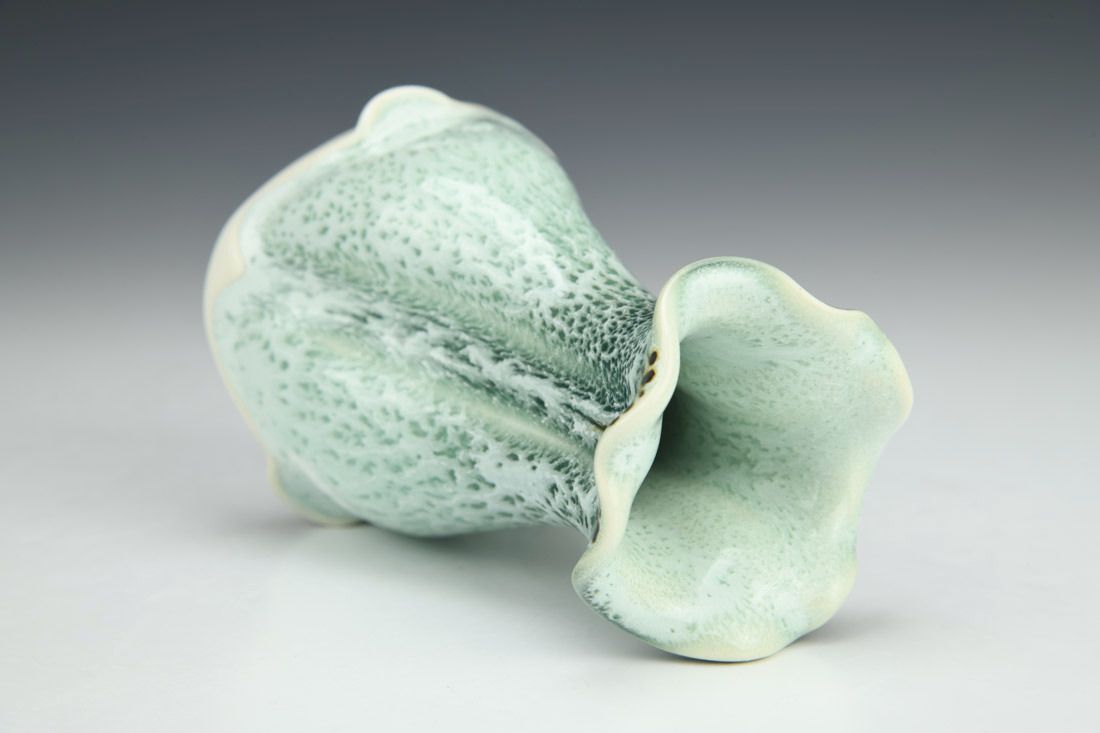 Porcelain, wheel thrown and altered, cone 11 oxidation fired, 5 x 3 x 3 inches.