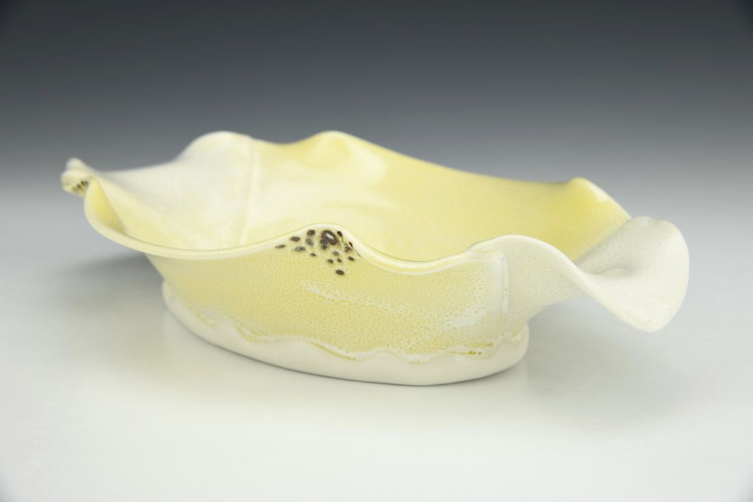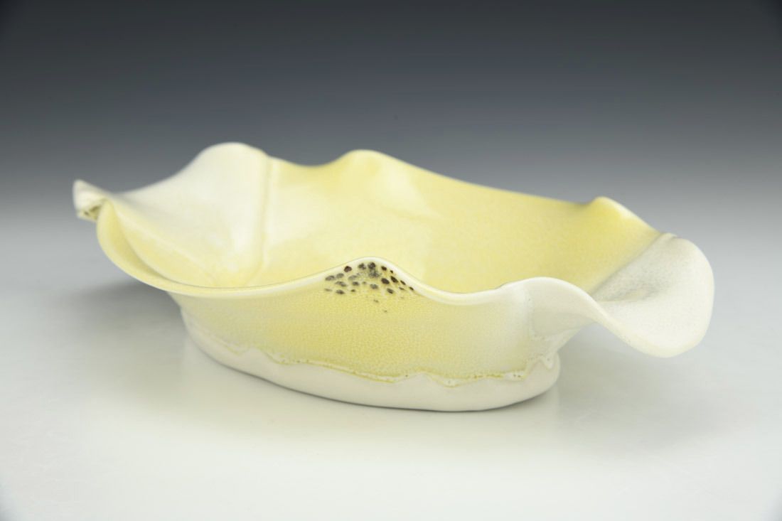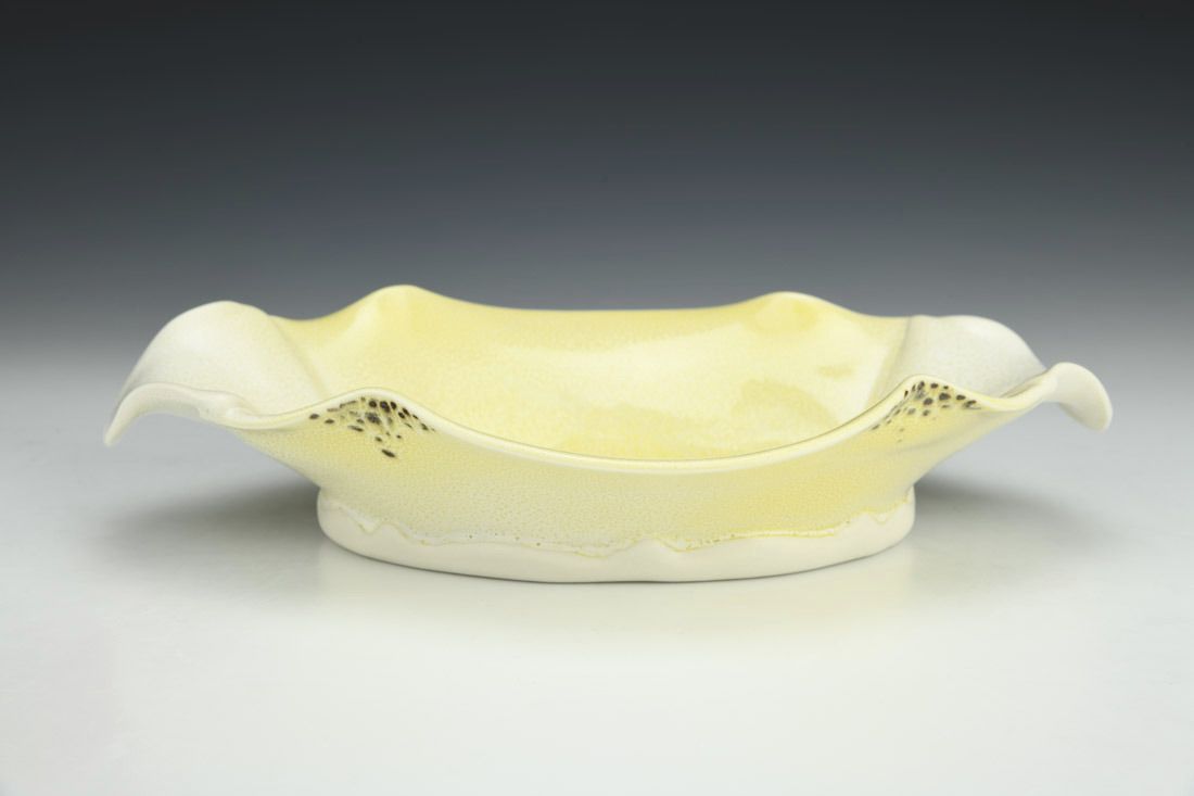 Porcelain, wheel thrown and altered, cone 11 oxidation fired, 2 x 10 x 7 inches.