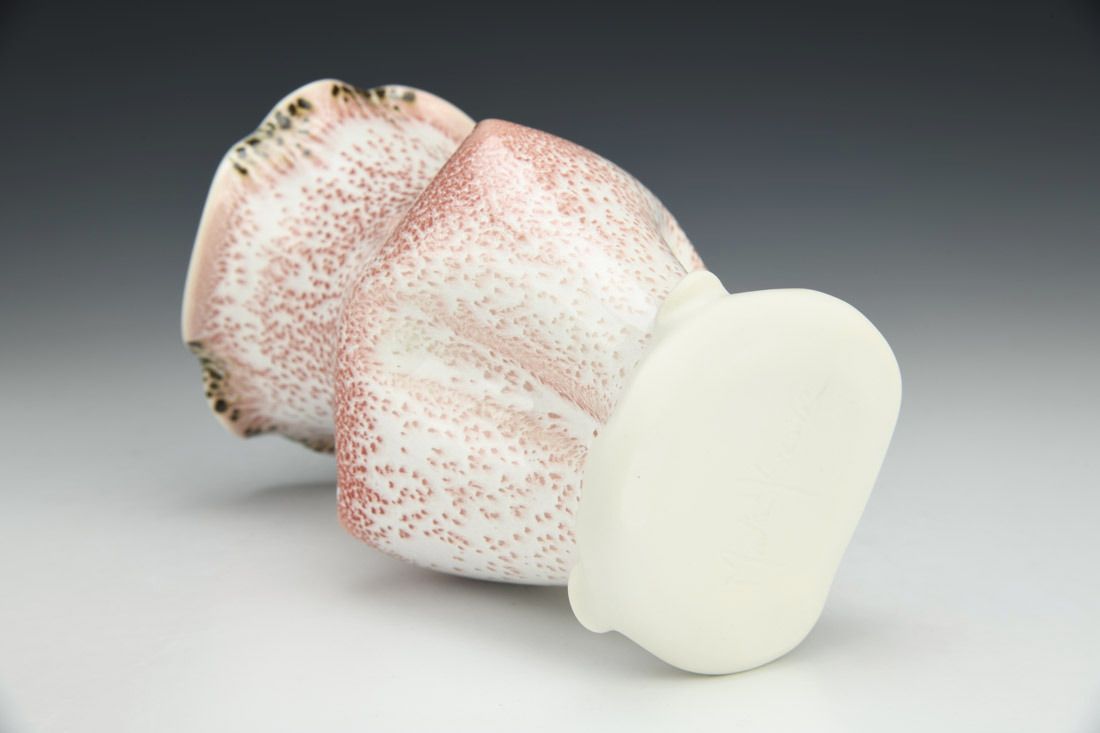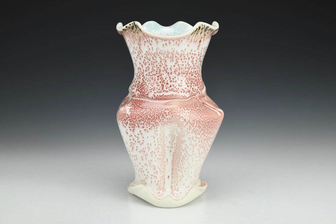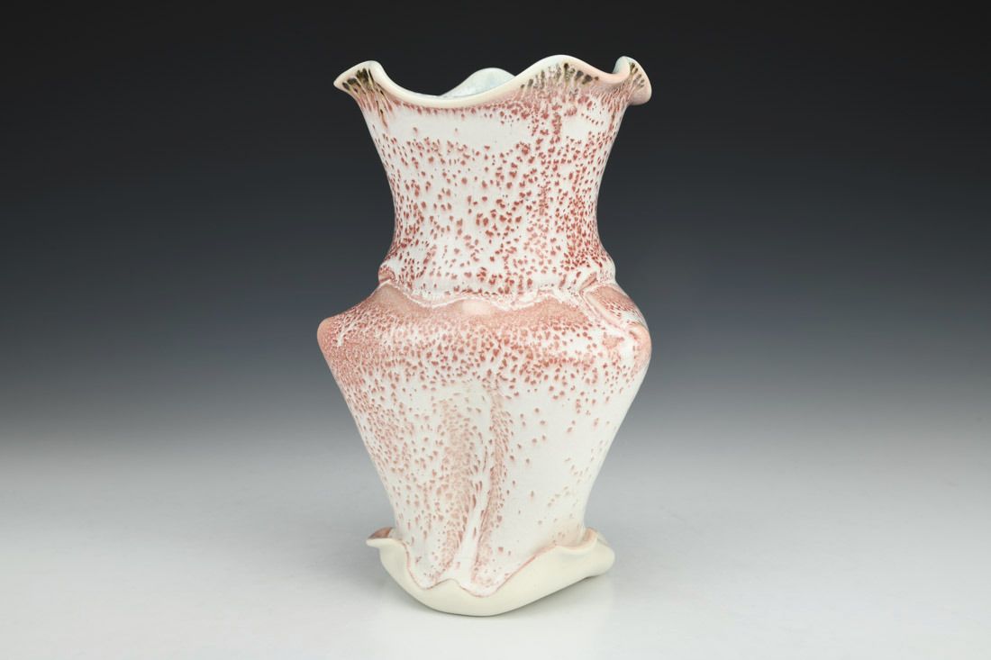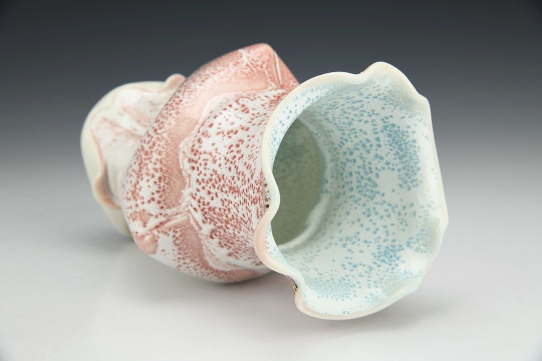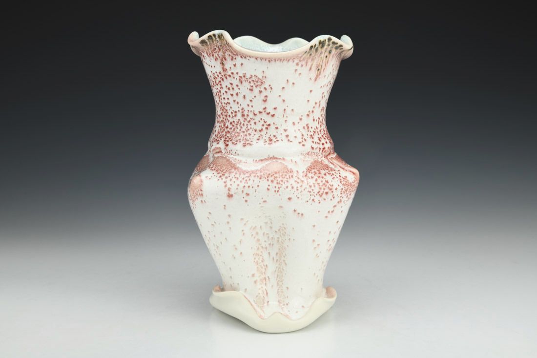 Porcelain, wheel thrown and altered, cone 11 oxidation fired, 7.5 x 5 x 5 inches.