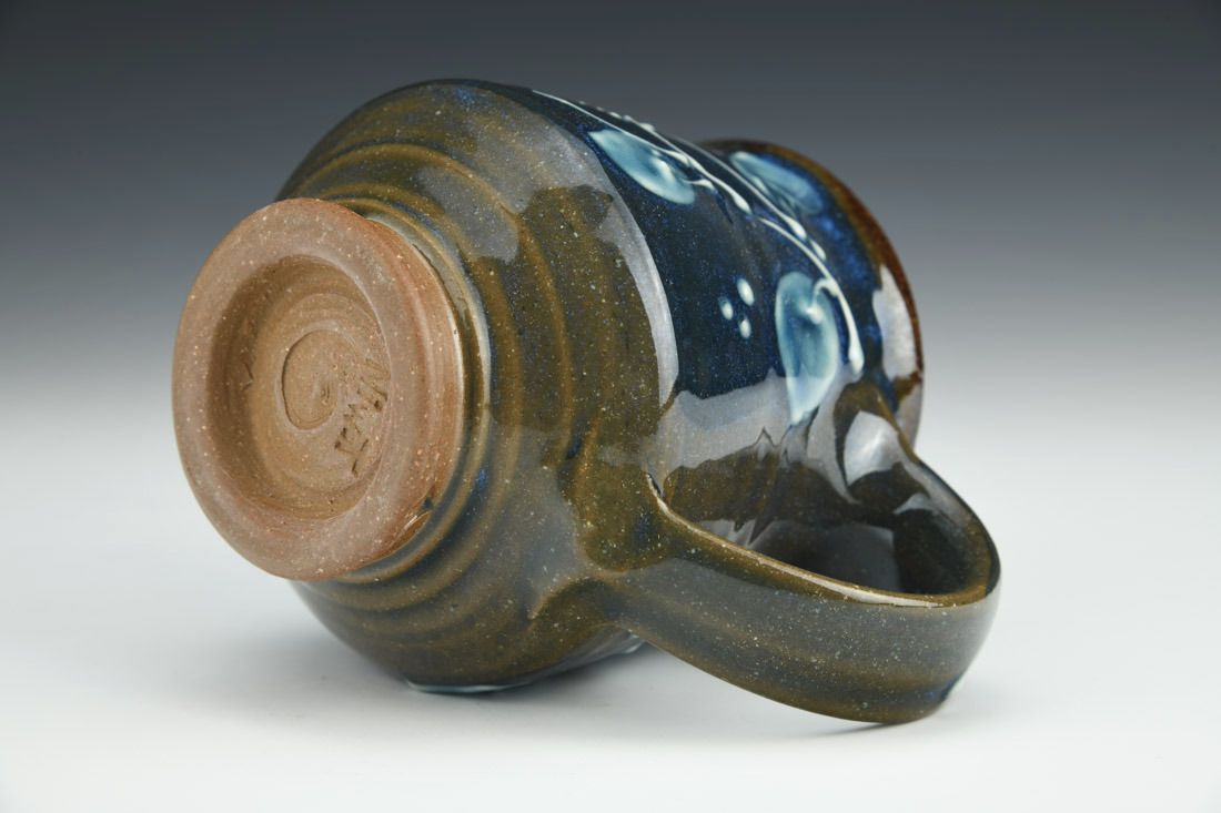 Stoneware, wheel thrown, slip trailed, cone 6 electric fired, 4 x 4.75 x 3.25 inches.