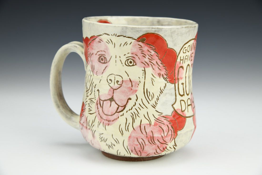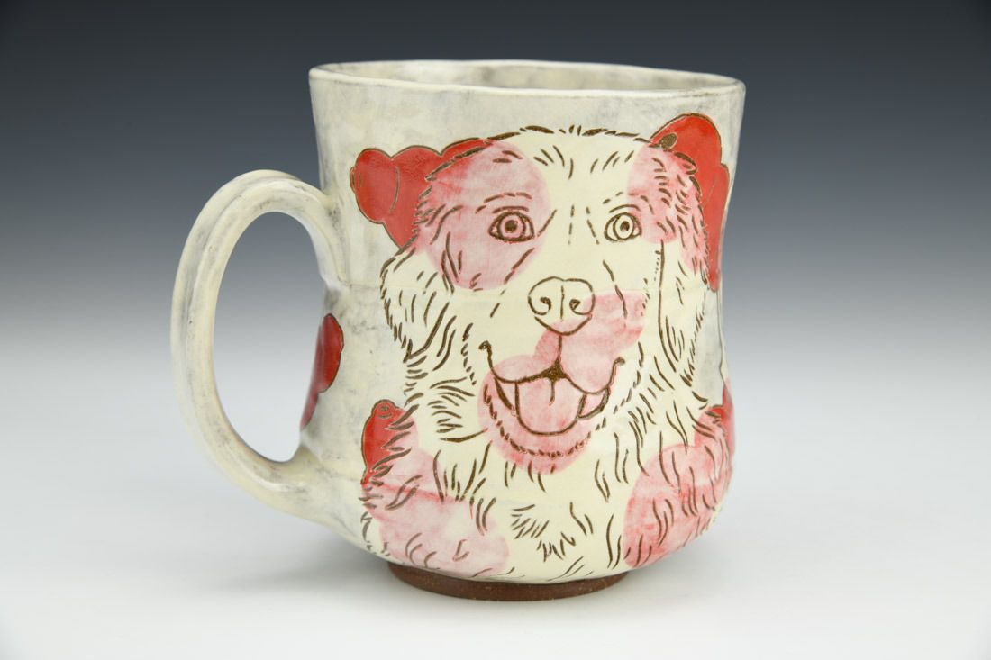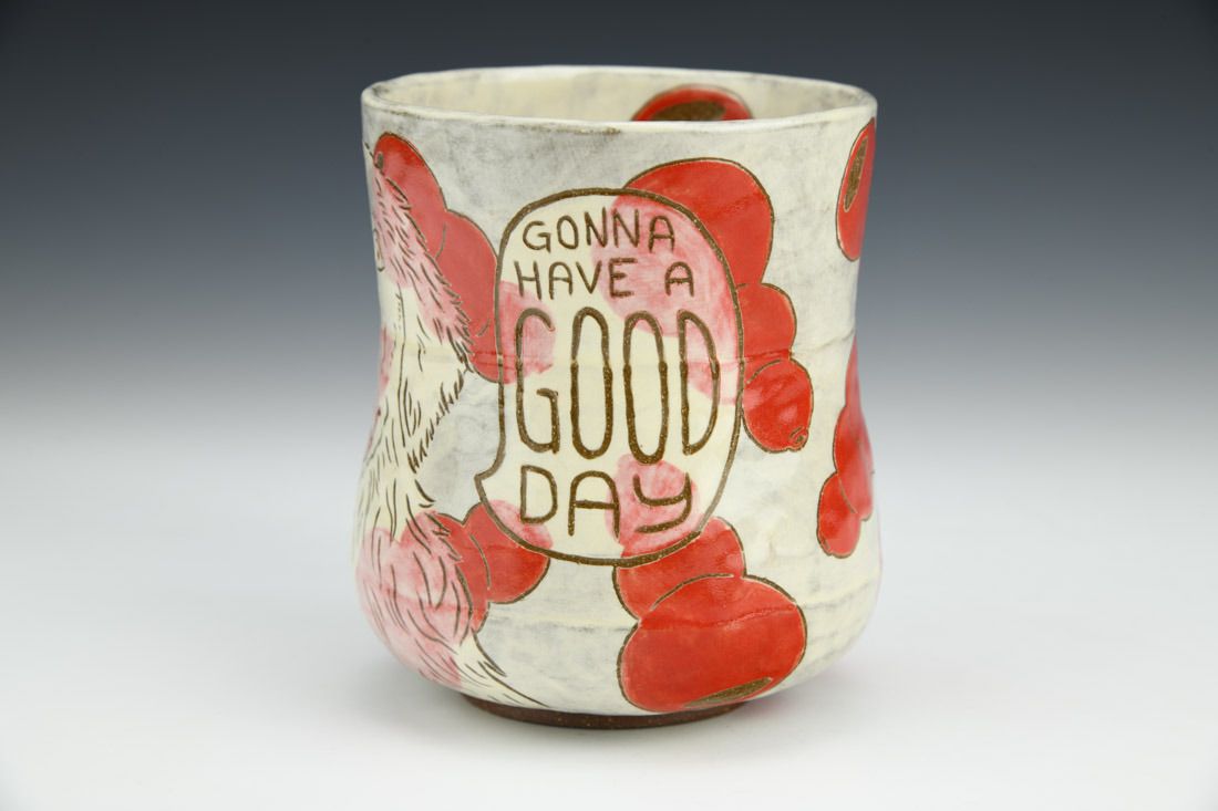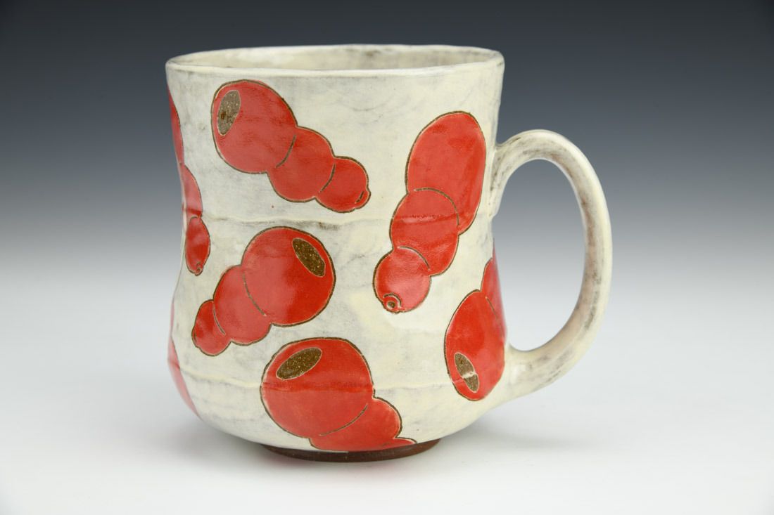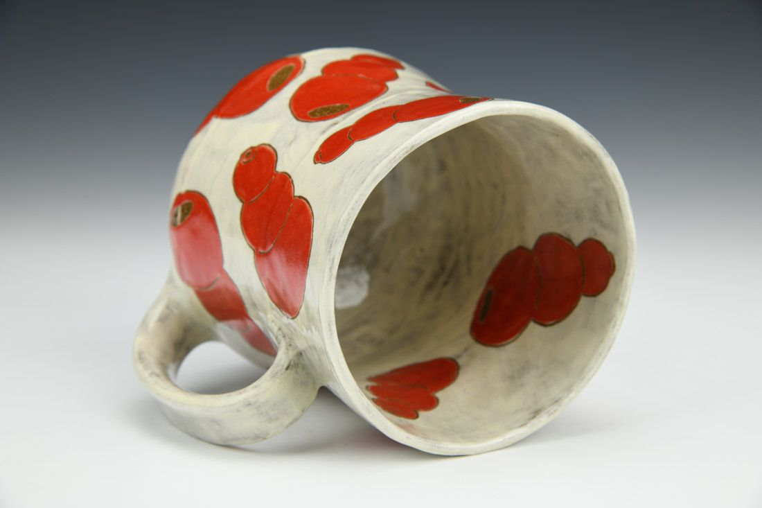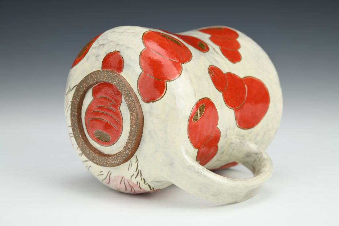Red stoneware, hand built, slip, underglaze, glaze, cone 6 electric fired, 4.5 x 5 x 3.75 inches.