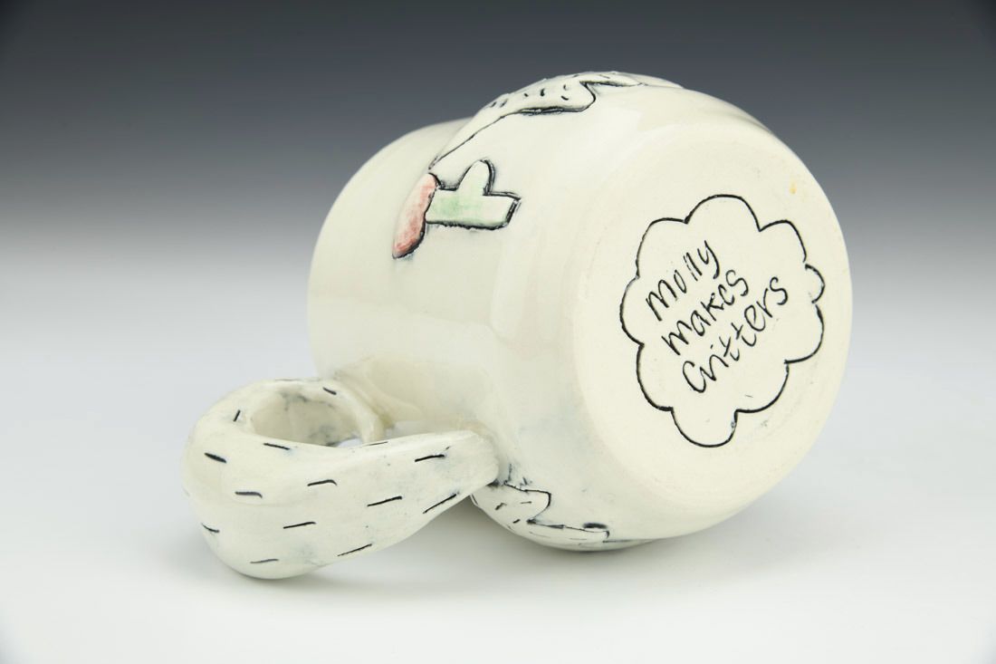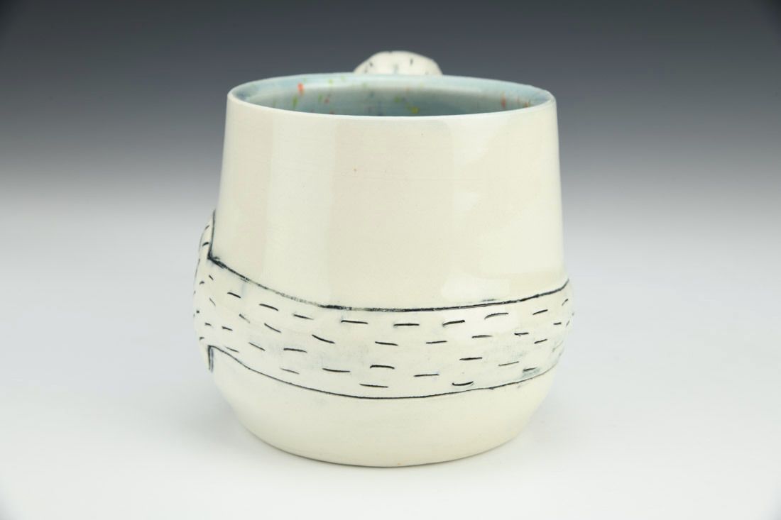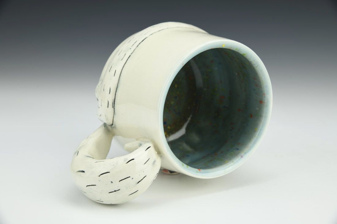 Porcelain, wheel thrown and altered, glaze, electric fired, 3.5 x 5.5 x 4.25 inches.