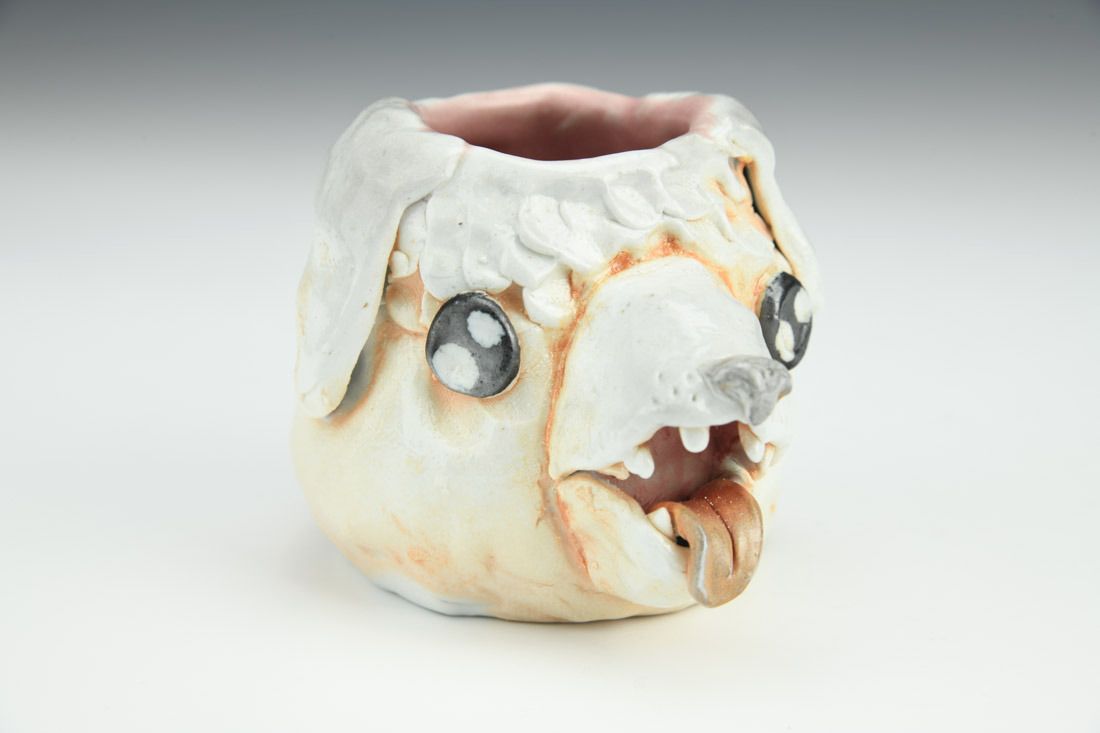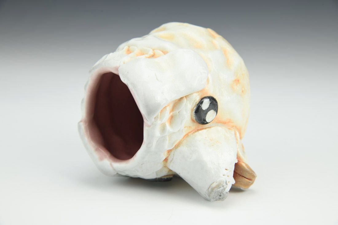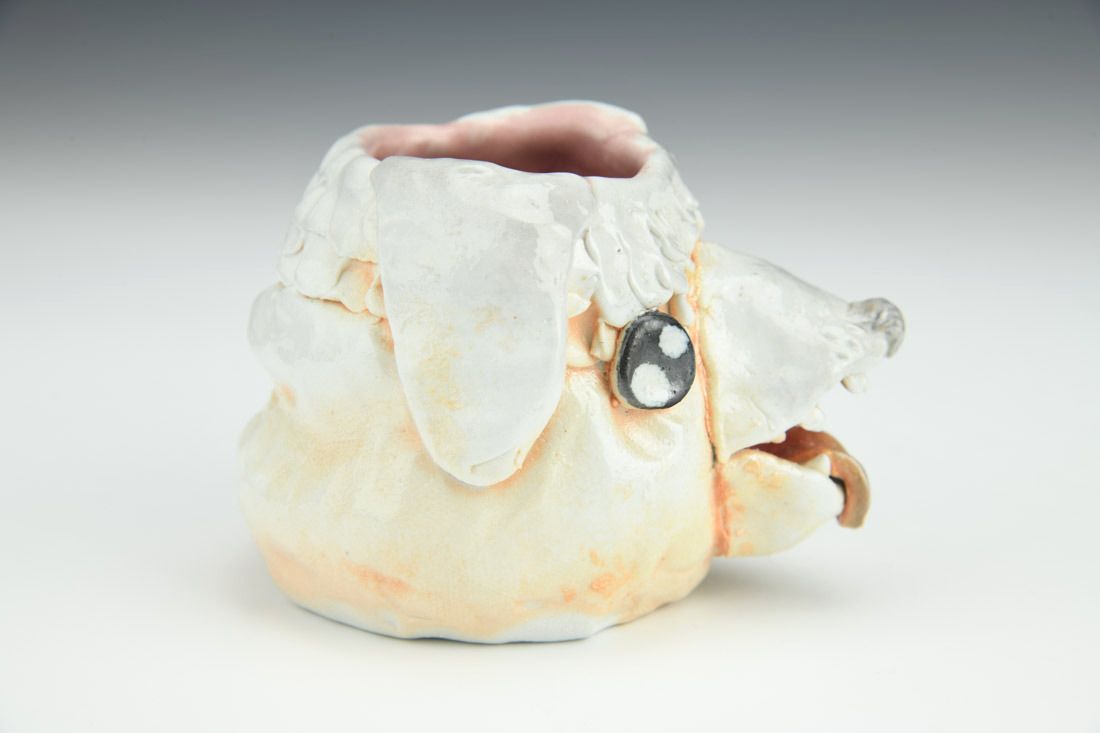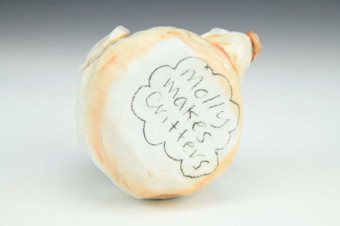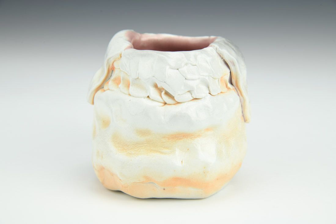 Porcelain, hand built with pinching, glaze, cone 6 soda fired, 2.5 x 4 x 3.25 inches.