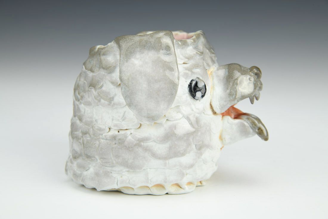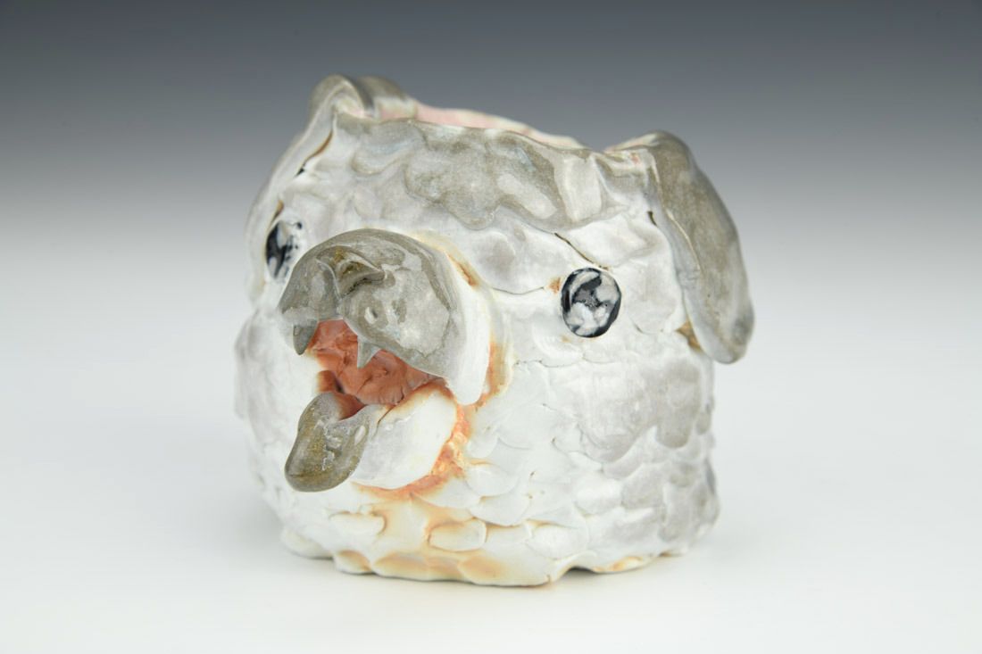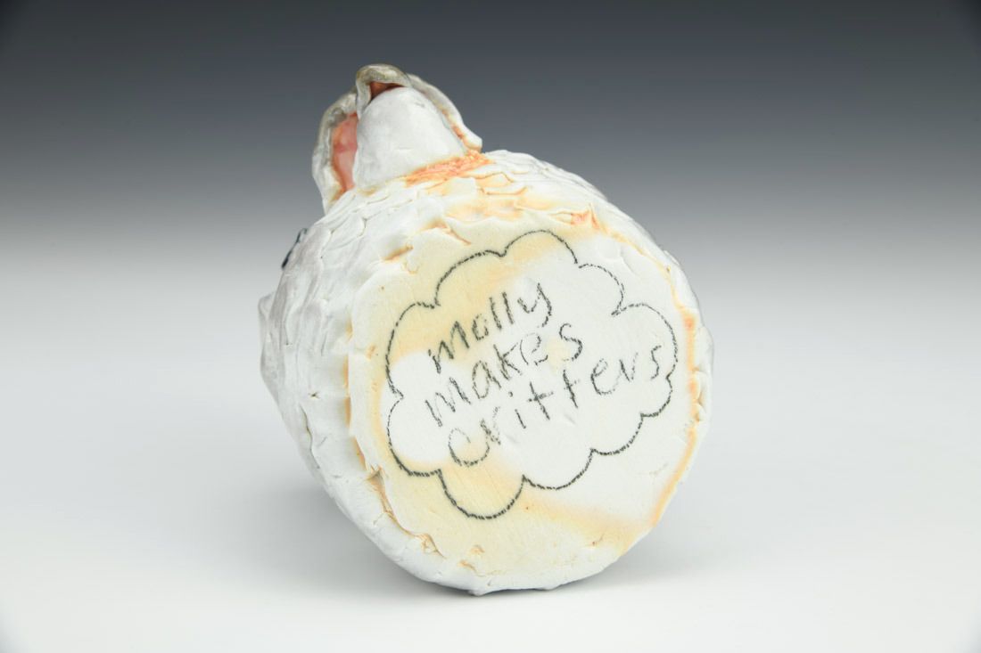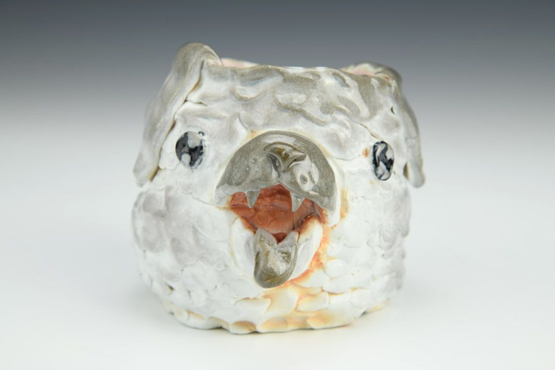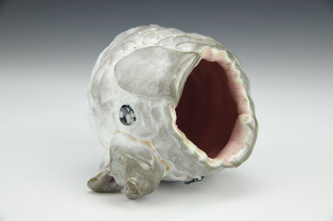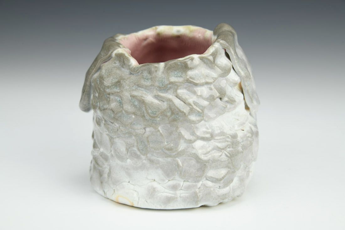 Porcelain, hand built with pinching, glaze, cone 6 soda fired, 3.25 x 4.5 x 4 inches.