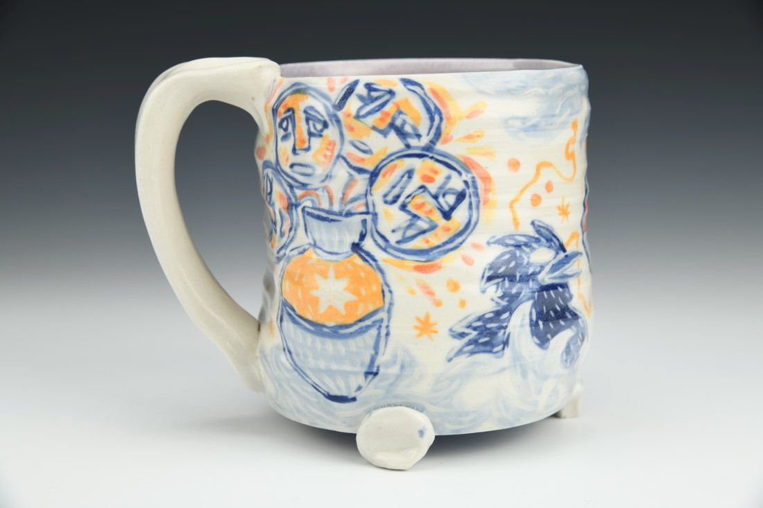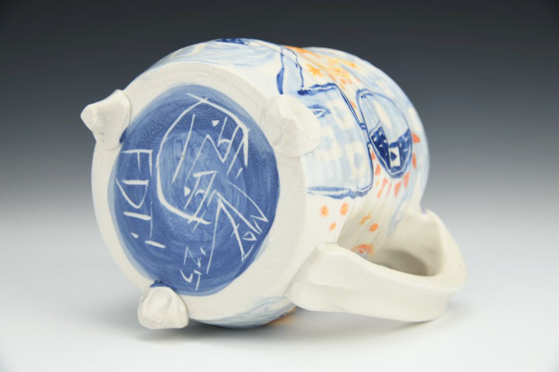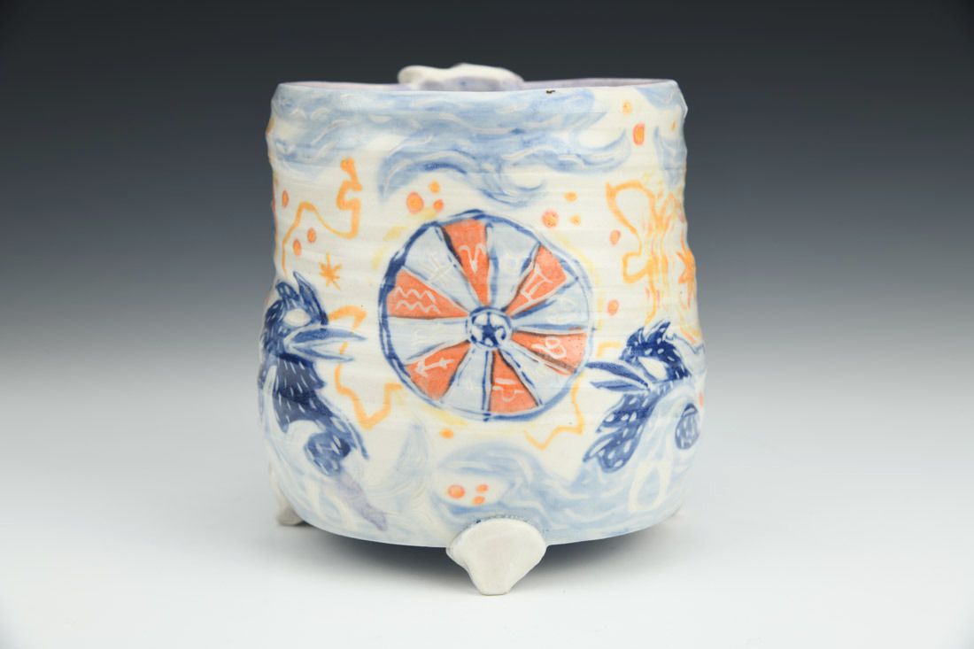 Porcelain, wheel thrown, slip, glaze, cone 10 fired, 4.5 x 5.25 x 4.25 inches.
