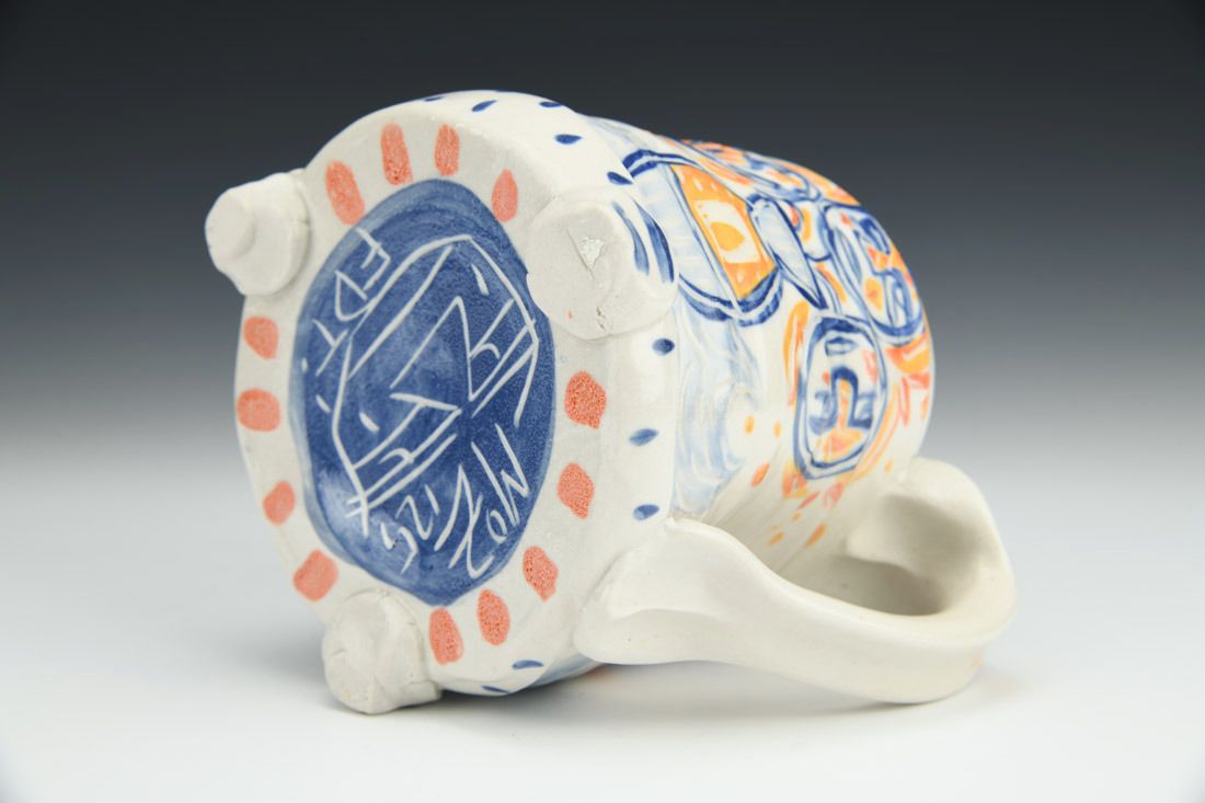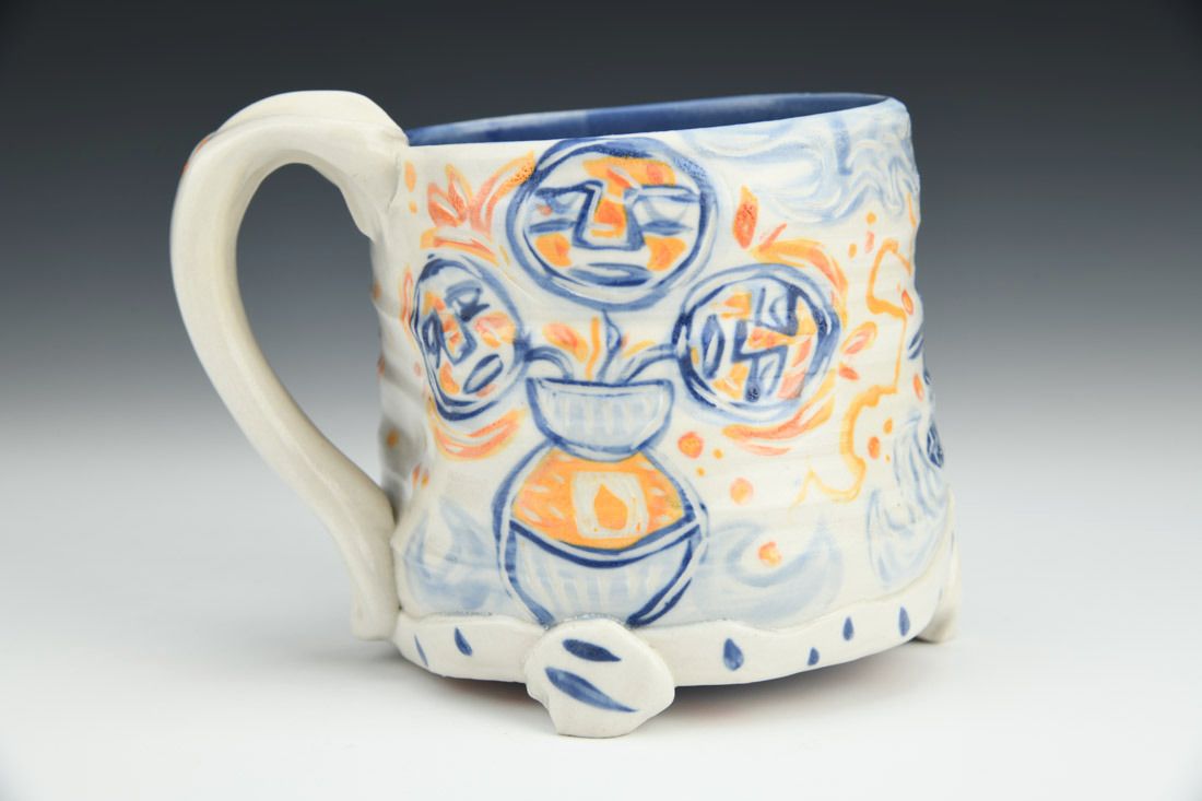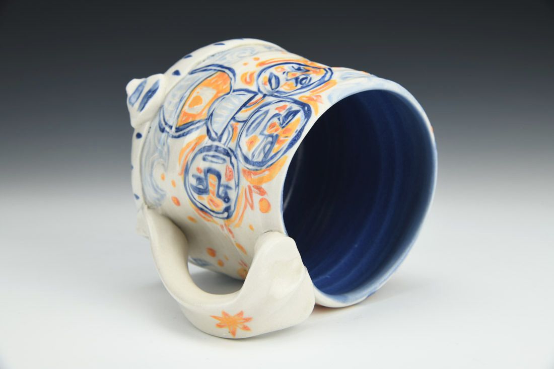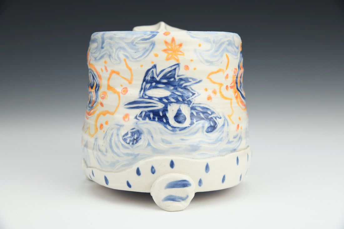 Porcelain, wheel thrown, slip, glaze, cone 10 fired, 4.5 x 5.5 x 4.5 inches.