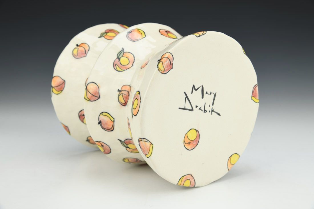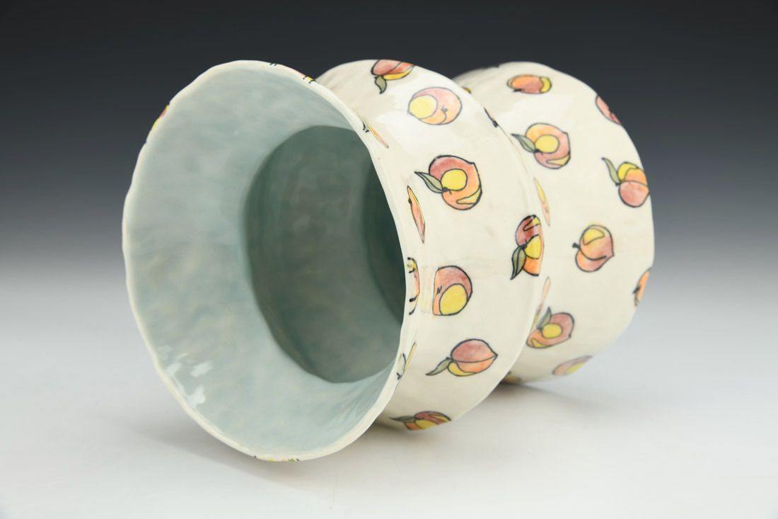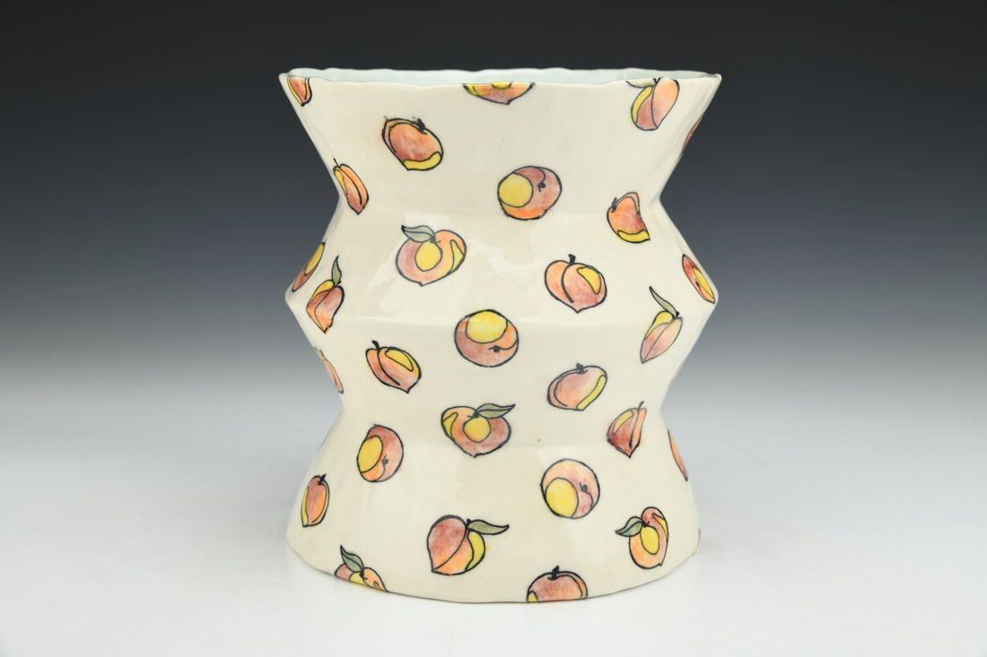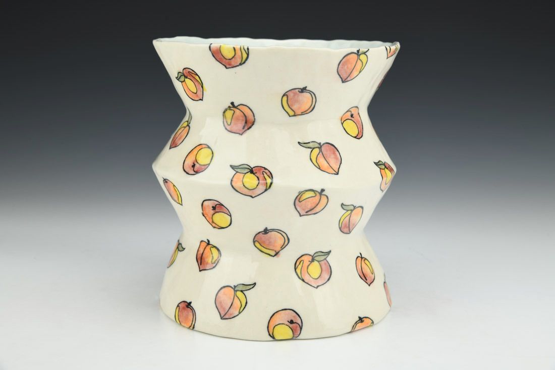 Porcelain, hand built with coils and pinched, cone 6 oxidation fired, 6.25 x 5.75 x 5.75 inches.