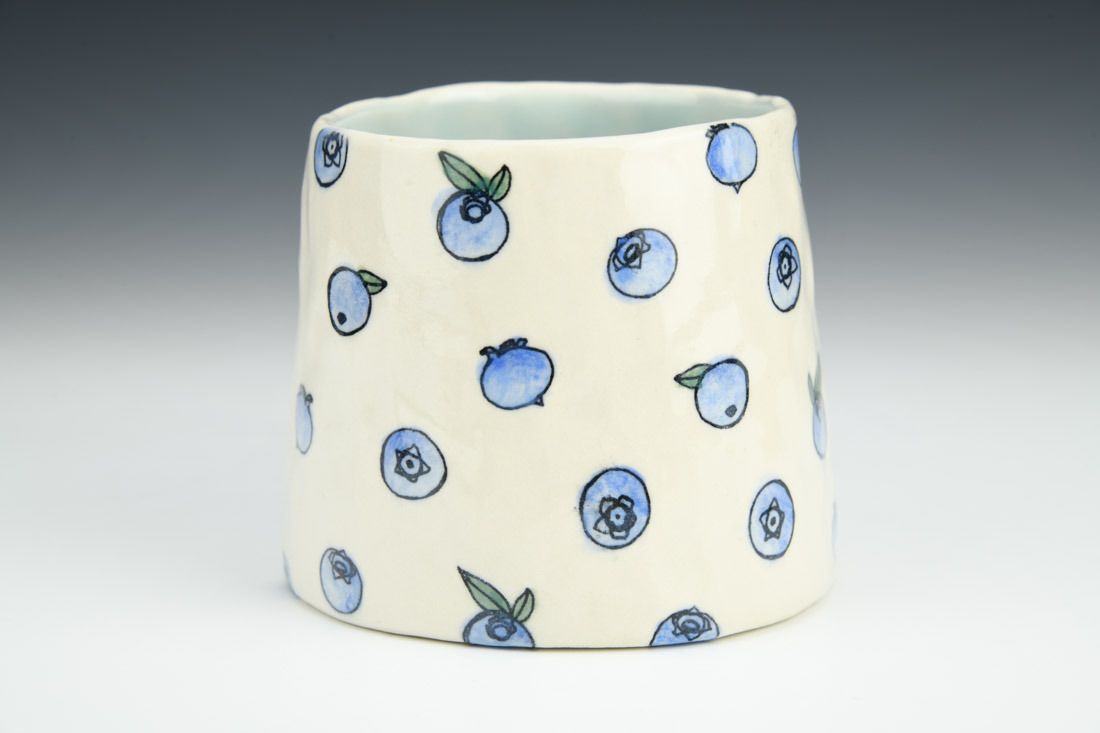 Porcelain, hand built with coils and pinched, cone 6 electric fried, 3.5 x 5.5 x 3.25 inches.