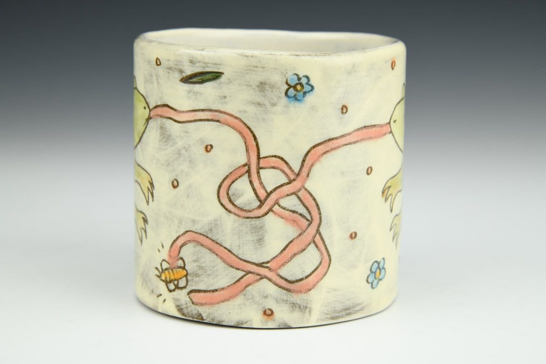 Stoneware, hand built, cone 6 oxidation fired, 3.25 x 3.25 x 3.5 inches.