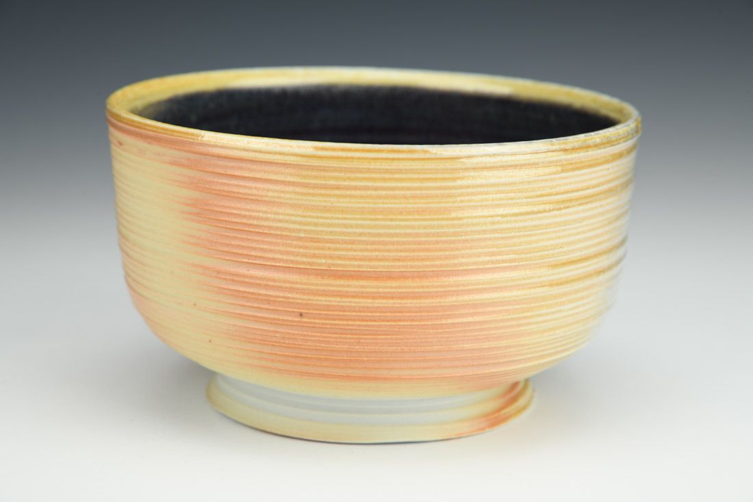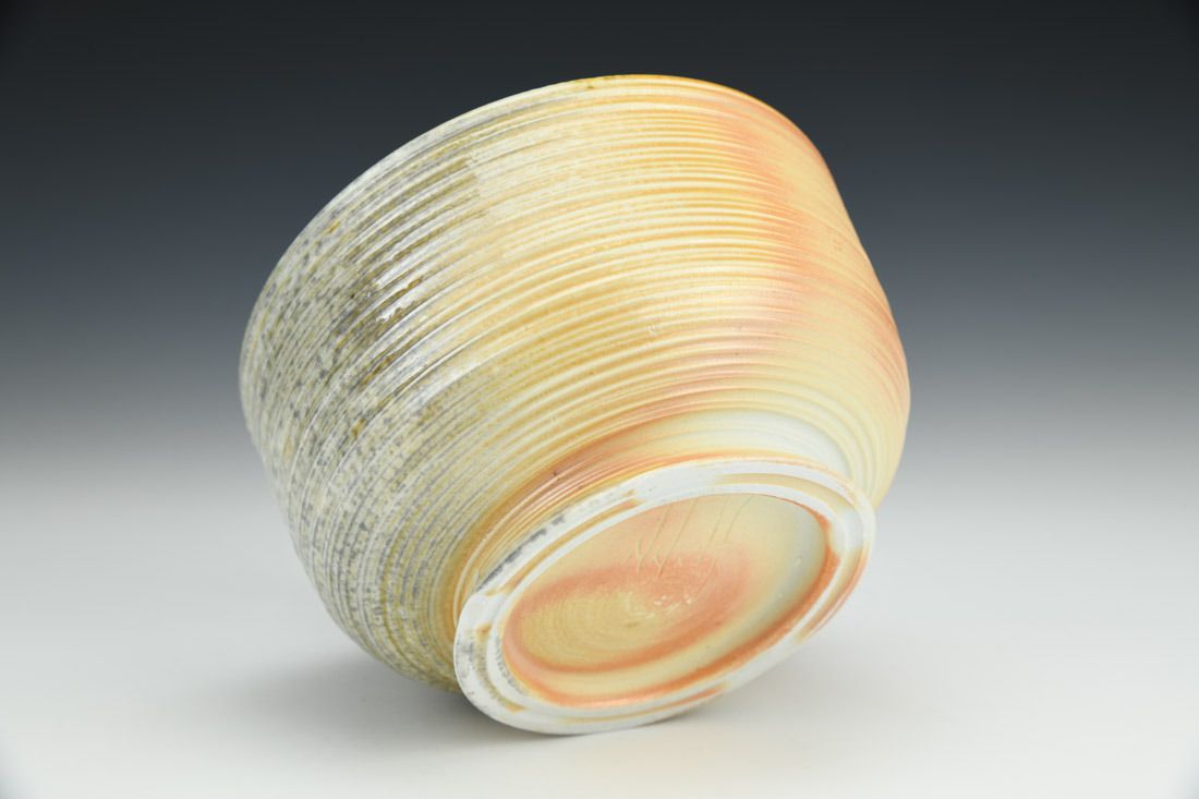 Porcelain, wheel thrown and altered, glaze, woodfired in soda kiln, 3 x 5 x 5 inches.
