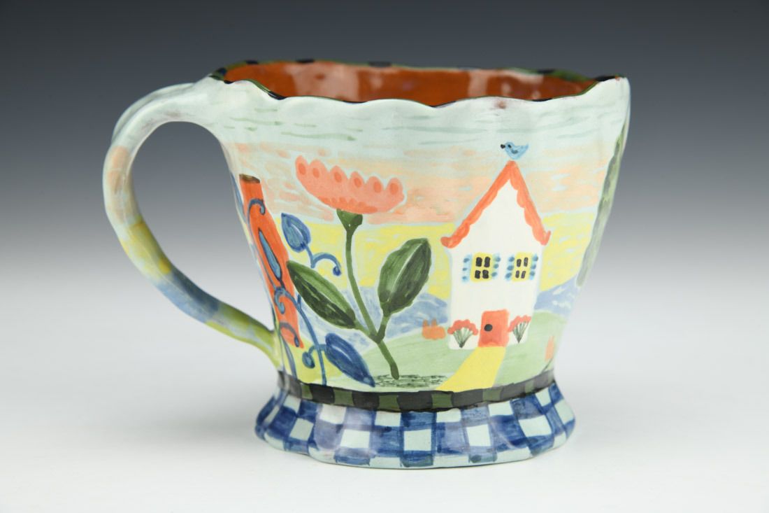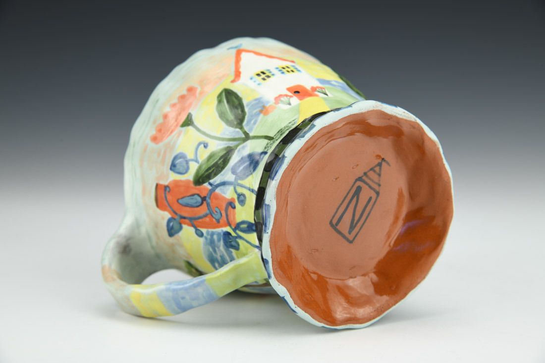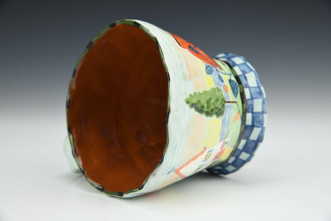 Red earthenware, hand built, underglaze, glaze, cone 04 electric fired, 3.5 x 5 x 4 inches.