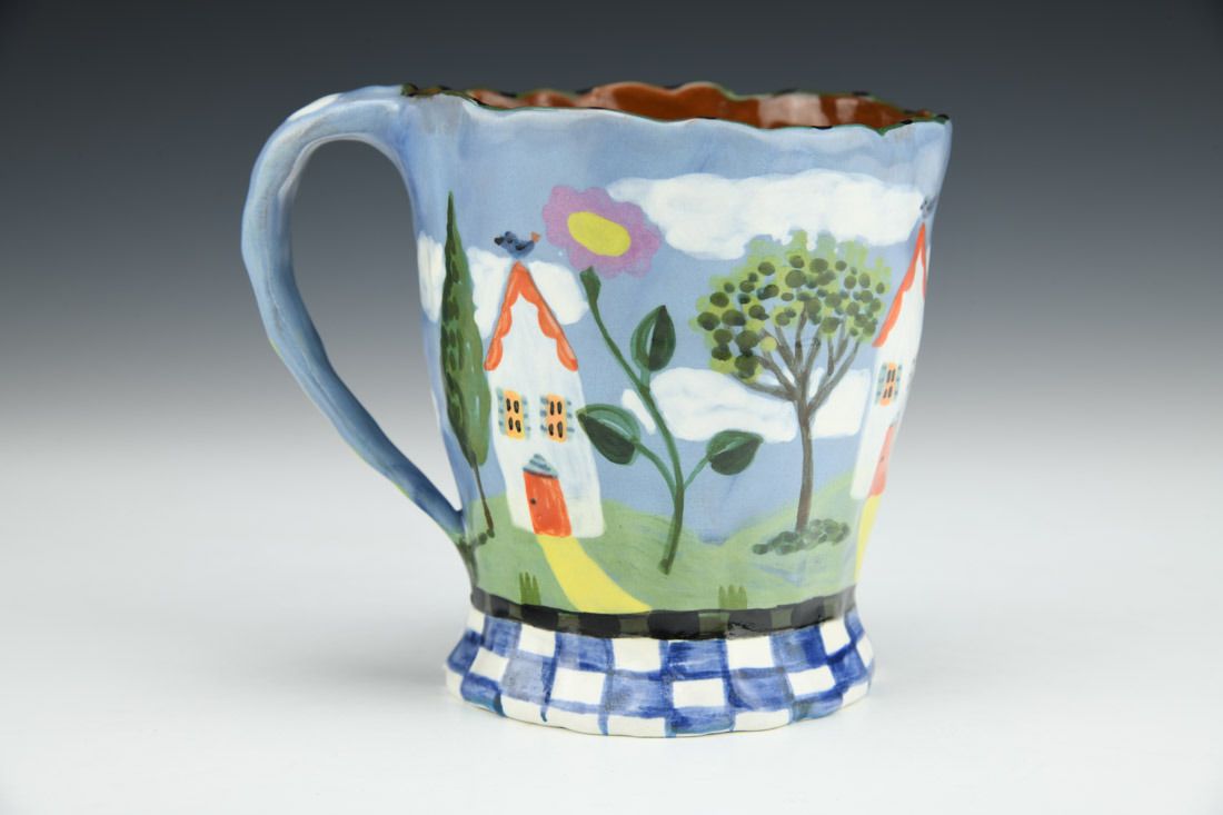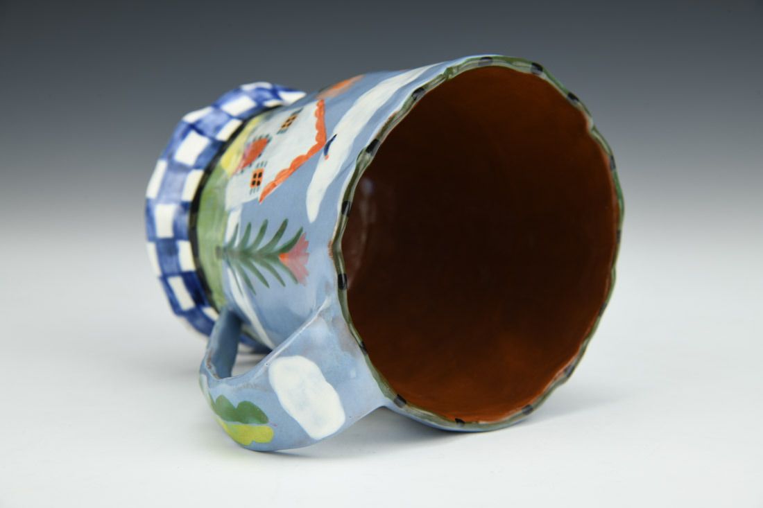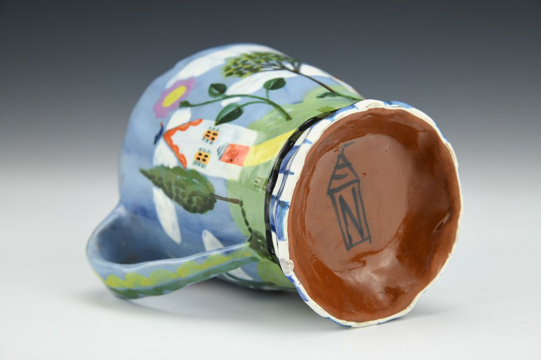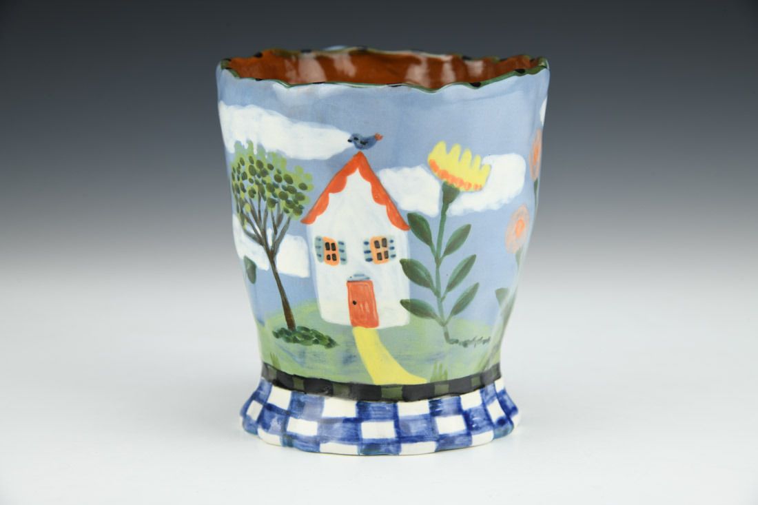 Red earthenware, hand built, underglaze, glaze, cone 04 electric fired, 3.75 x 4.5 x 3.5 inches.